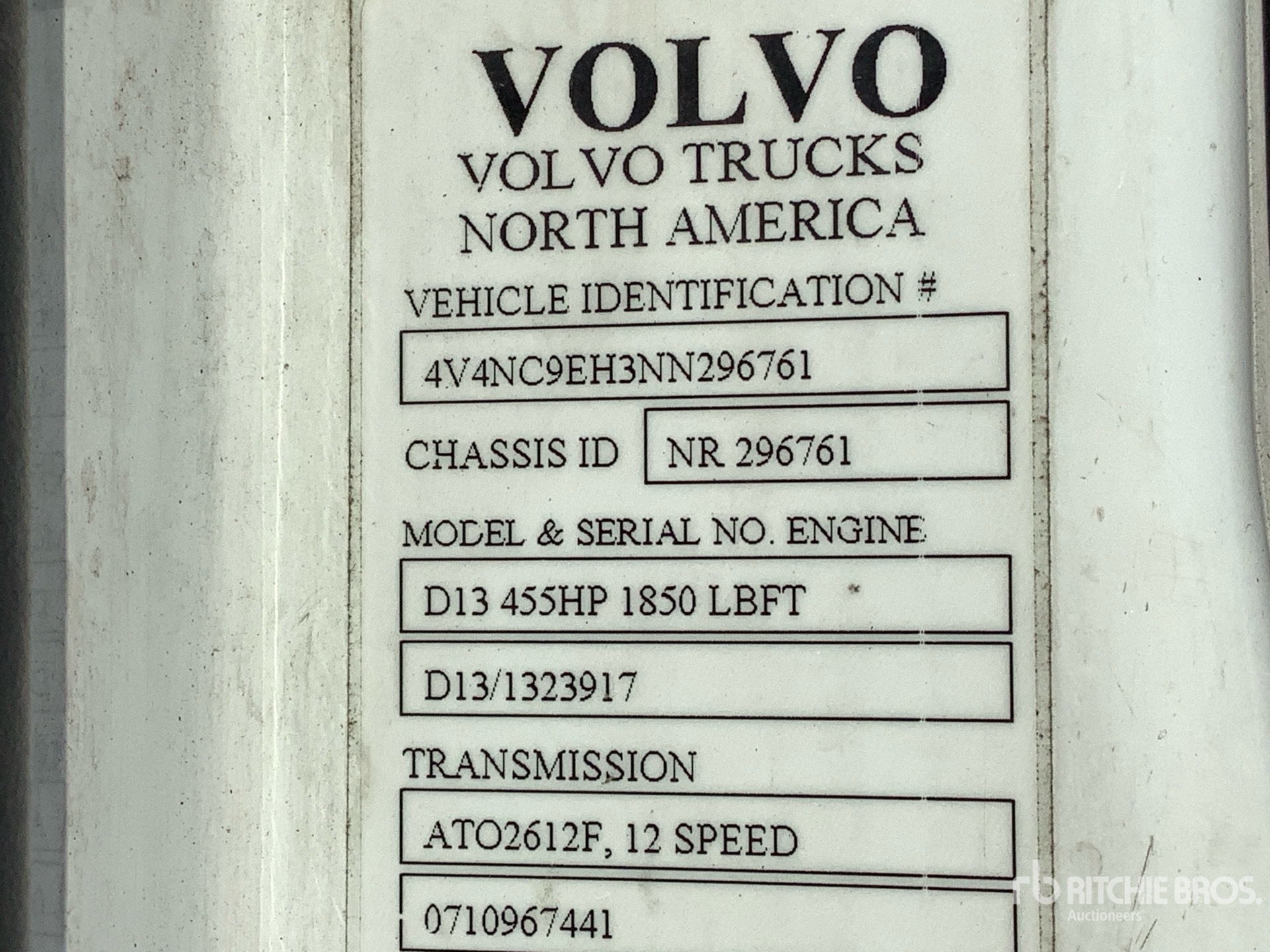 Les Informations détaillées de l’équipement sont d’une portée limitée, et les Encans Ritchie Bros. n’ont inspecté aucun autre aspect ou composant de l’équipement que ceux présentés expressément. Sauf indication précise, nous n’offrons aucune représentation ou garantie, officielle ou implicite, sur l’équipement ou ses composants, sans aucune limite de représentation ou de garantie en ce qui concerne la fonctionnalité, la conformité à toute norme de sécurité ou l’exigence de toute autorité ou agence de régulation en vigueur, l’adaptation à un quelconque usage, ou la valeur commerciale. Il vous est fortement conseillé d’effectuer votre propre inspection détaillée de l’équipement avant d’enchérir.