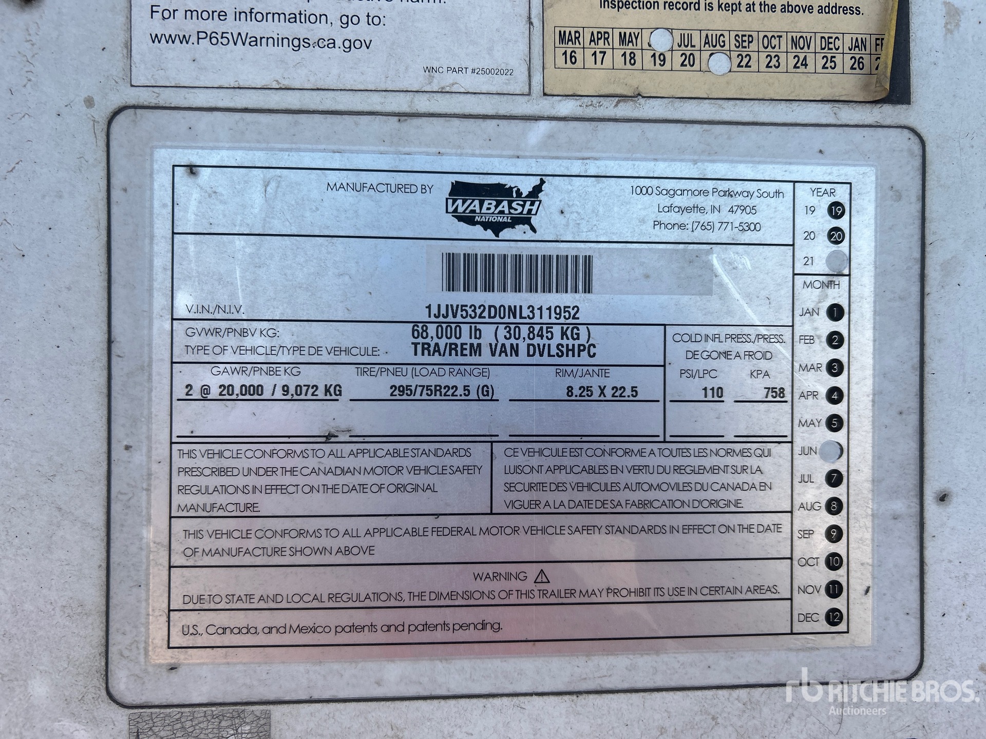 Les Informations détaillées de l’équipement sont d’une portée limitée, et les Encans Ritchie Bros. n’ont inspecté aucun autre aspect ou composant de l’équipement que ceux présentés expressément. Sauf indication précise, nous n’offrons aucune représentation ou garantie, officielle ou implicite, sur l’équipement ou ses composants, sans aucune limite de représentation ou de garantie en ce qui concerne la fonctionnalité, la conformité à toute norme de sécurité ou l’exigence de toute autorité ou agence de régulation en vigueur, l’adaptation à un quelconque usage, ou la valeur commerciale. Il vous est fortement conseillé d’effectuer votre propre inspection détaillée de l’équipement avant d’enchérir.