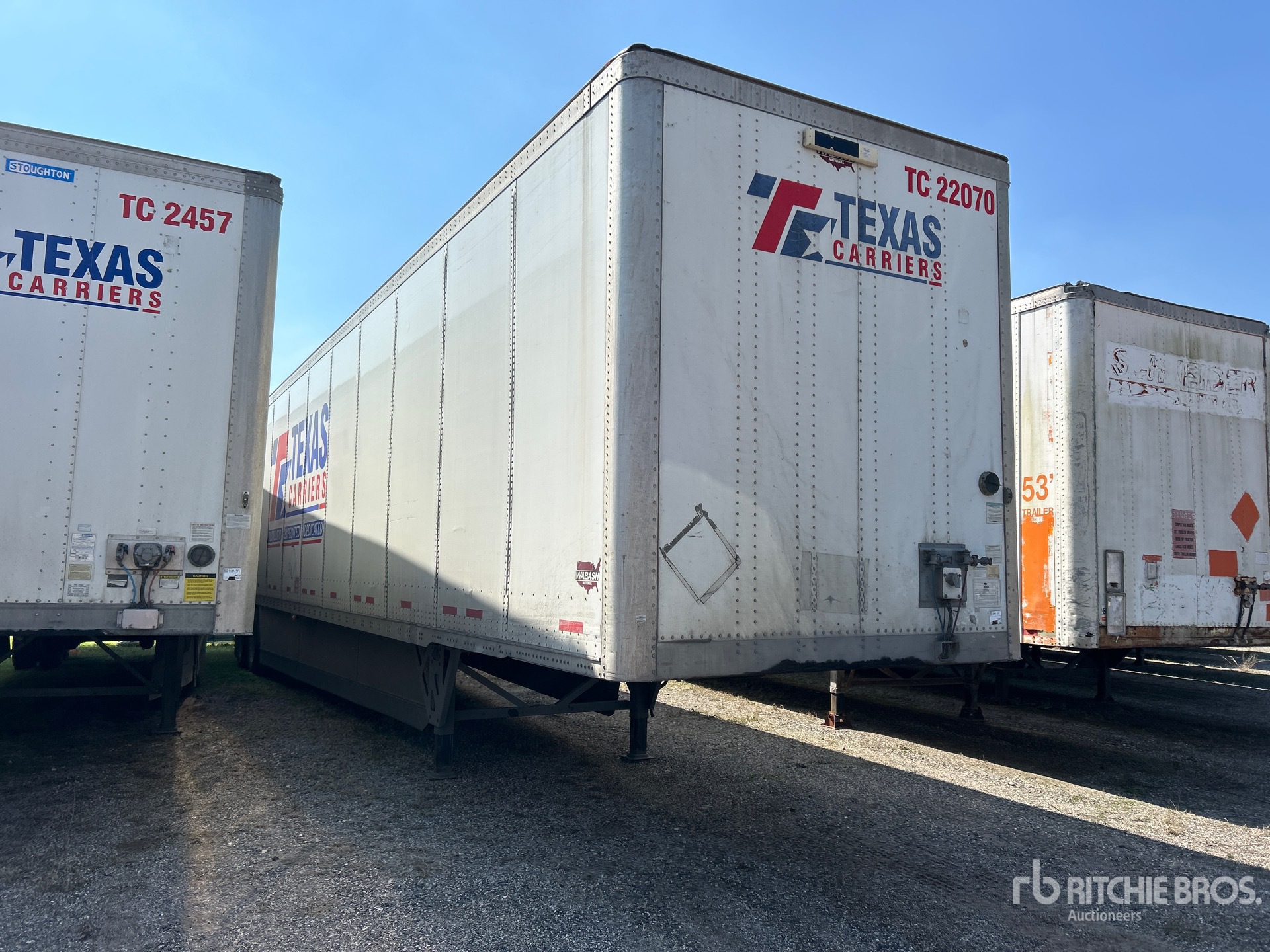 Suspension pneumatique coulissante, jupes latérales, plancher de bois franc, porte battante, pneus 295/75R22.5, PNBV de 68 000 lb