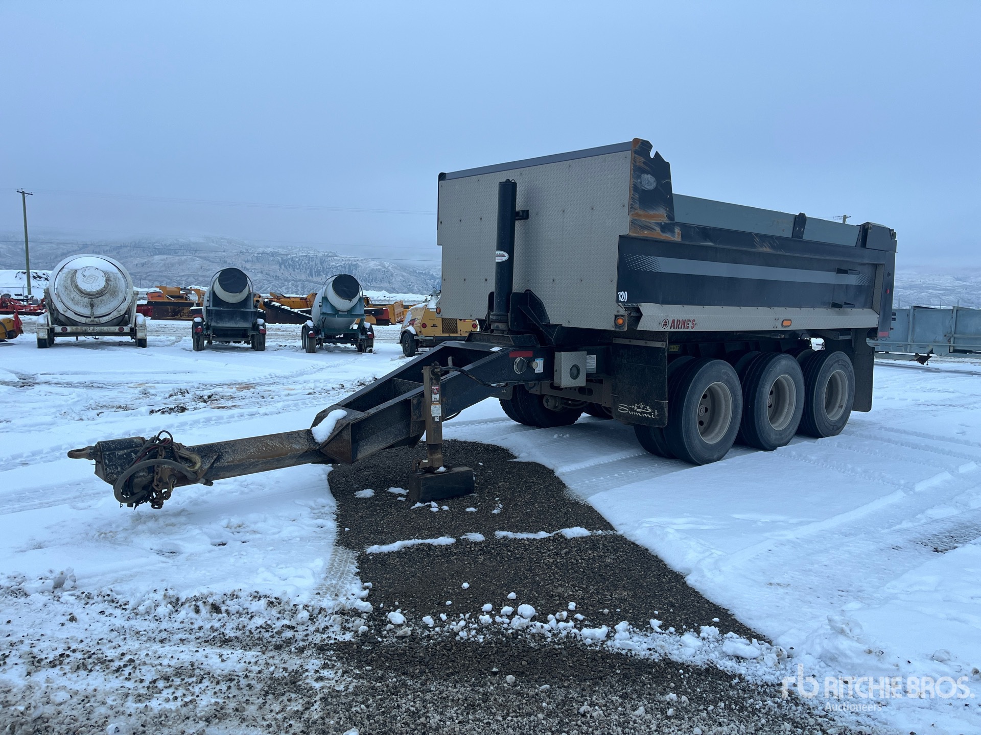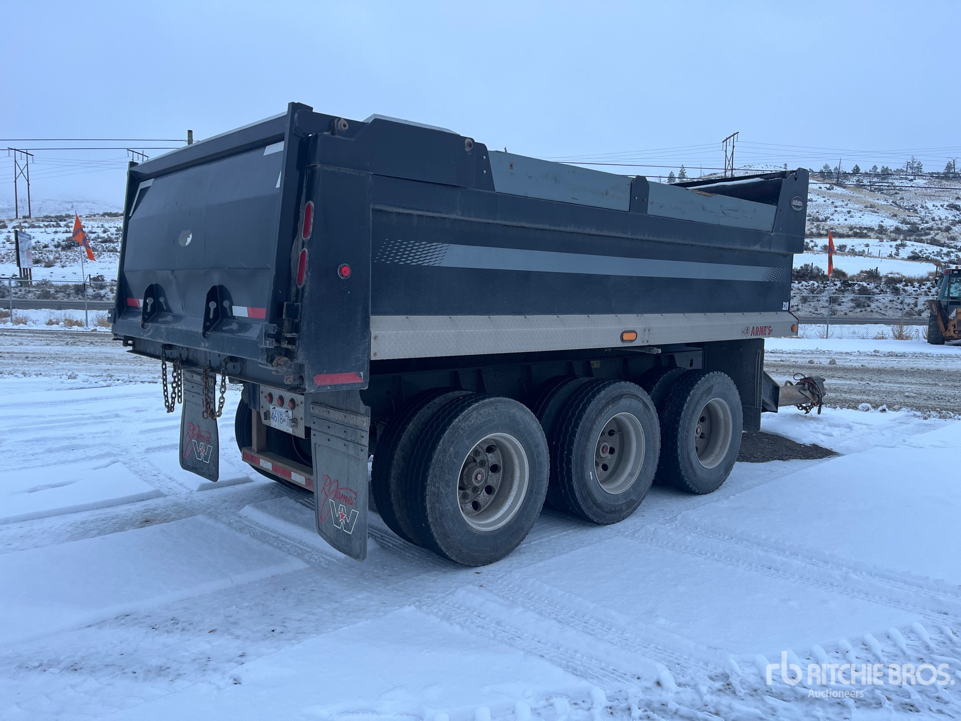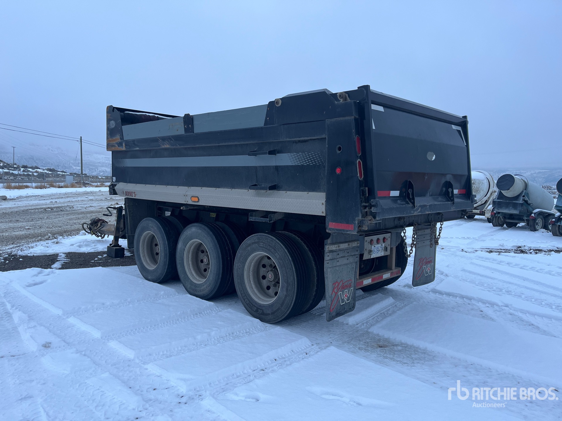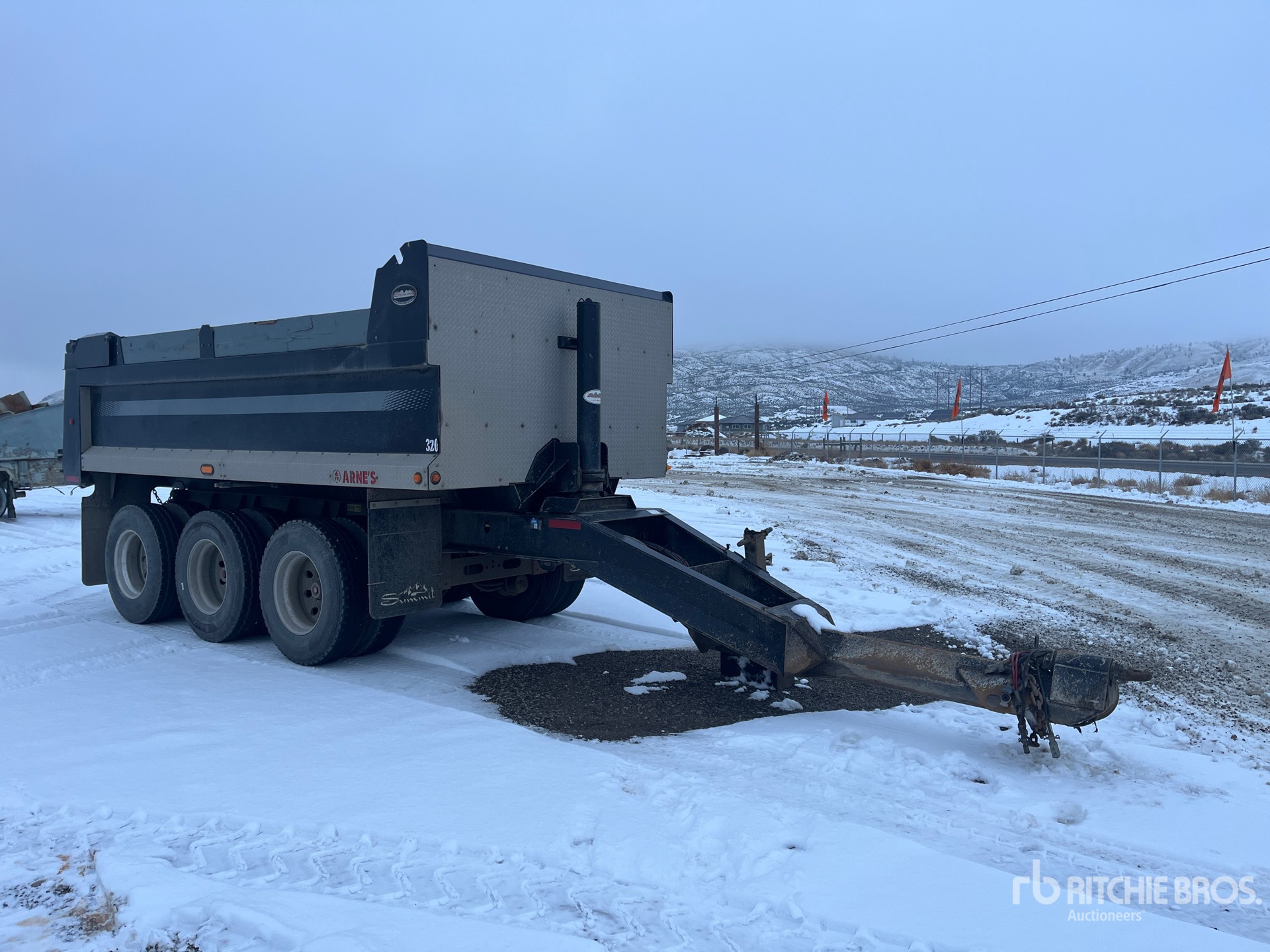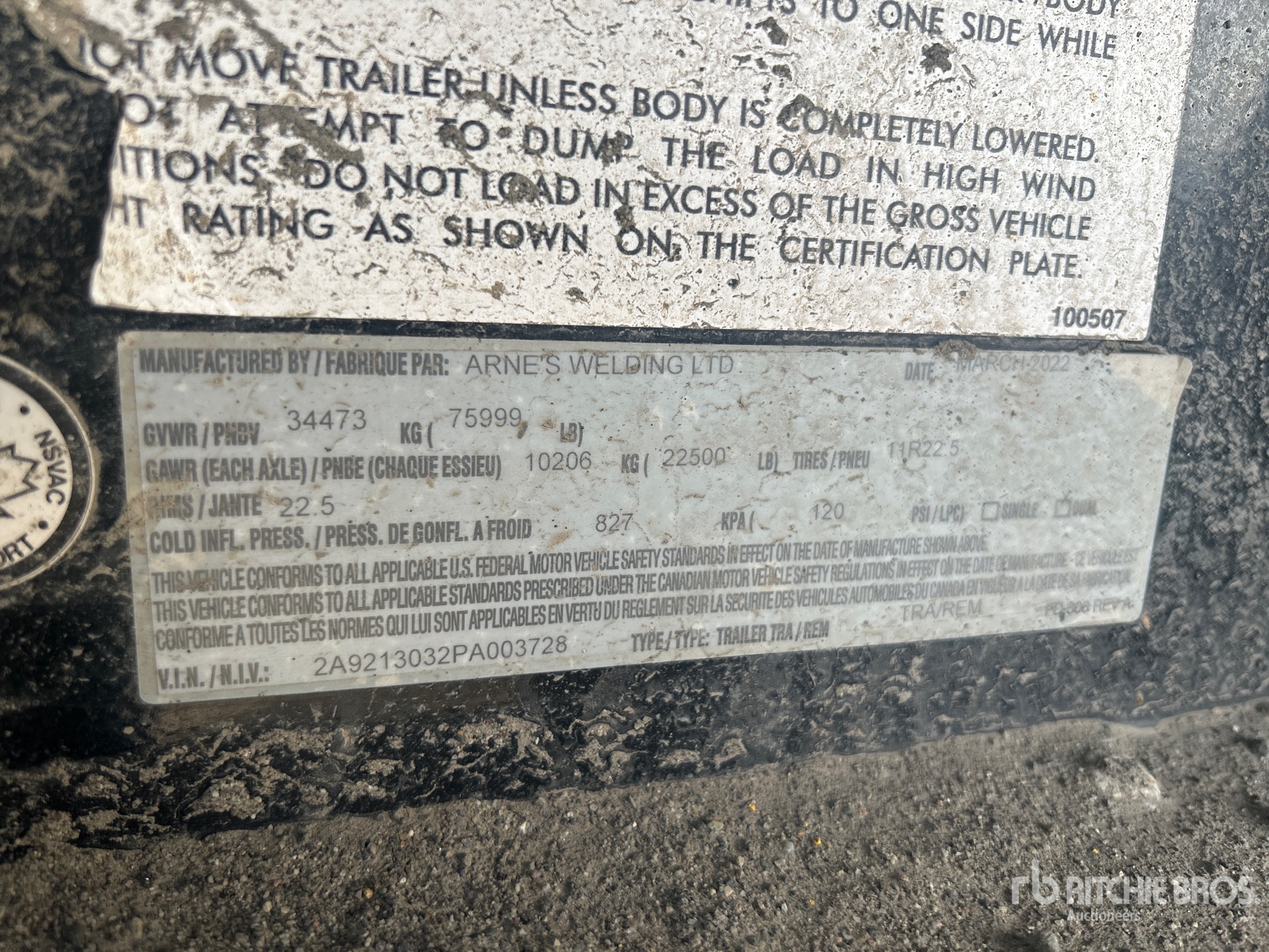 Attelage à anneau Lunette, suspension pneumatique, freins à air, caisse de 5,2 m (17 pi), parois latérales de 91 cm (36 po), caisse en acier, bâche à enroulement pneumatique, hayon à levage élevé, jantes en aluminium, pneus 11R22.5, PTAC de 34 460 kg (75 999 lb)
