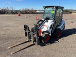 Situé dans la voie 21, cabine fermée, climatisation, Tier 3, étiquette EPA américaine 2023, conforme CARB, coupleur hydraulique, godet de 43,5 pouces, fourches, pneus 23x10.50-12