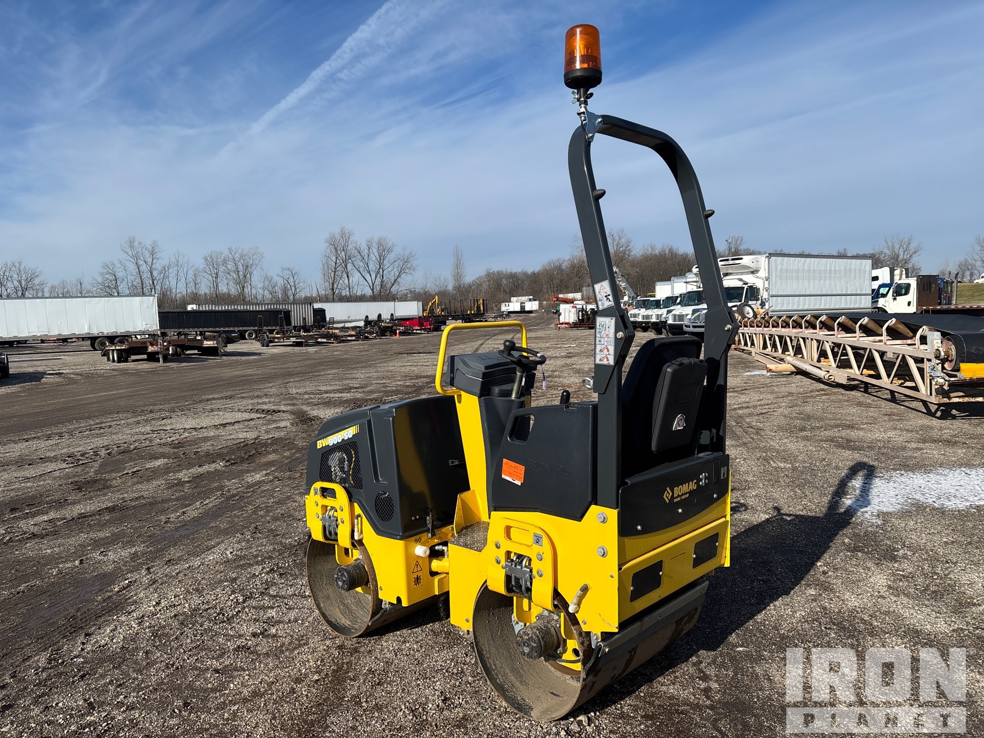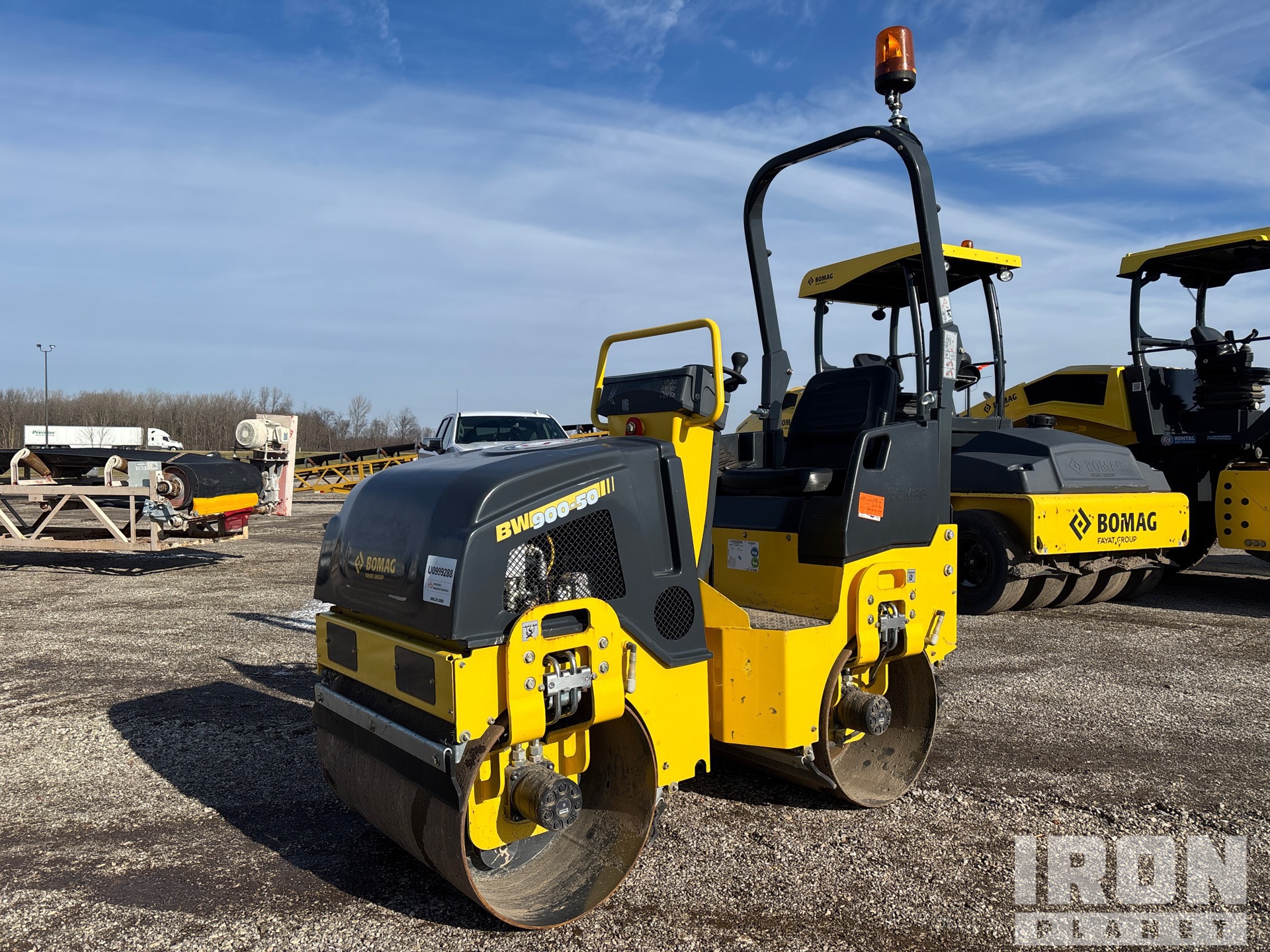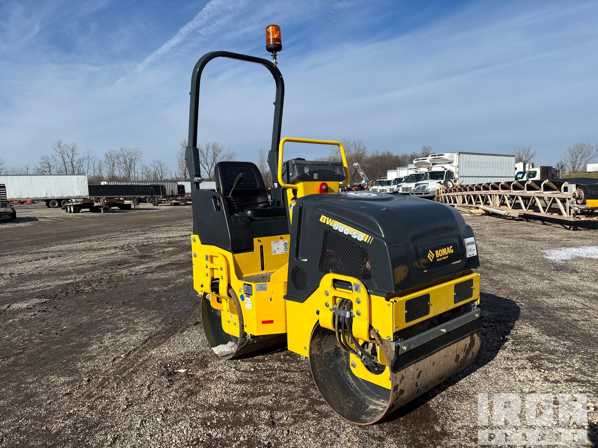 Situé sur la voie 29, emplacement 1, poste de conduite ouvert, étiquette EPA américaine 2022, moteur à essence Honda 2 cylindres, largeur de compactage de 35,5 pouces, système d'eau