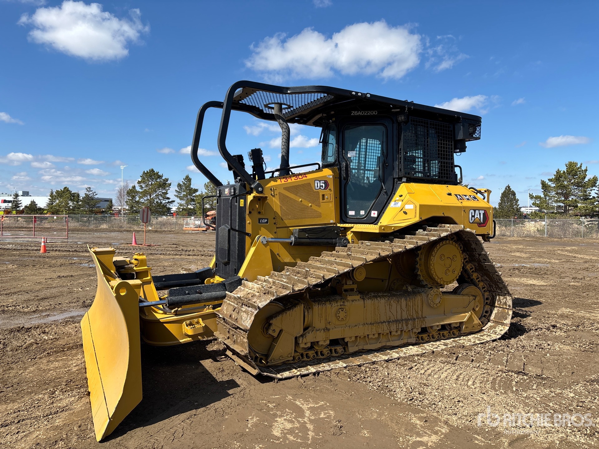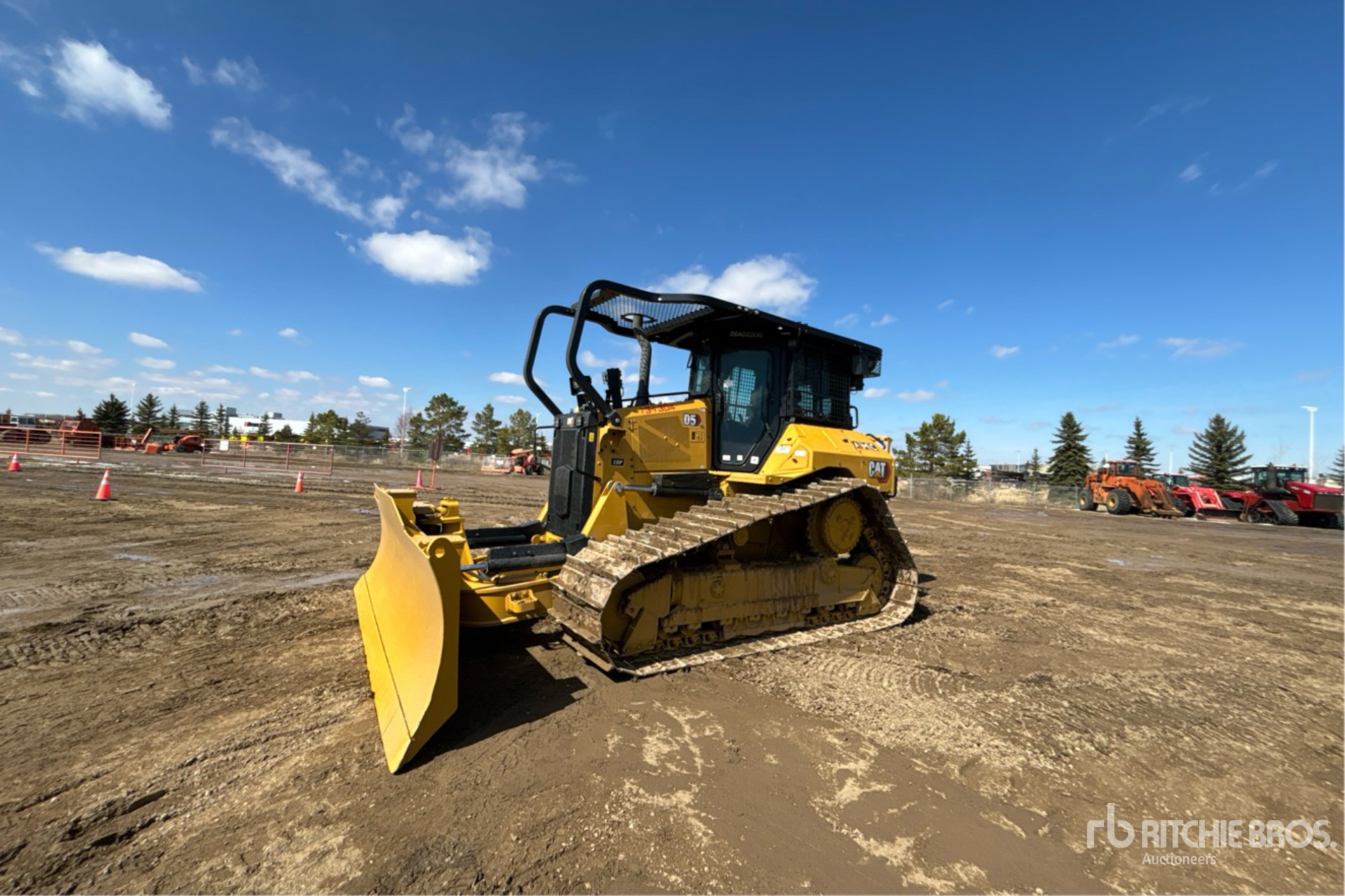 Cabine fermée, climatisation, caméra de recul, précâblage pour contrôle de nivellement, homologation EPA américaine 2023, conforme aux normes CARB, nécessite un fluide d'échappement diesel, réchauffeur de liquide de refroidissement moteur, vanne d'arrêt d'air positive, balayeuses, lame PAT de 406 cm de large, chenilles à crampons simples de 86 cm, treuil Carco 50B, barre d'attelage