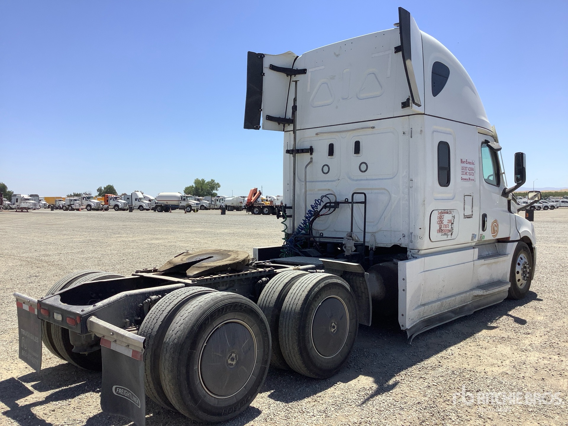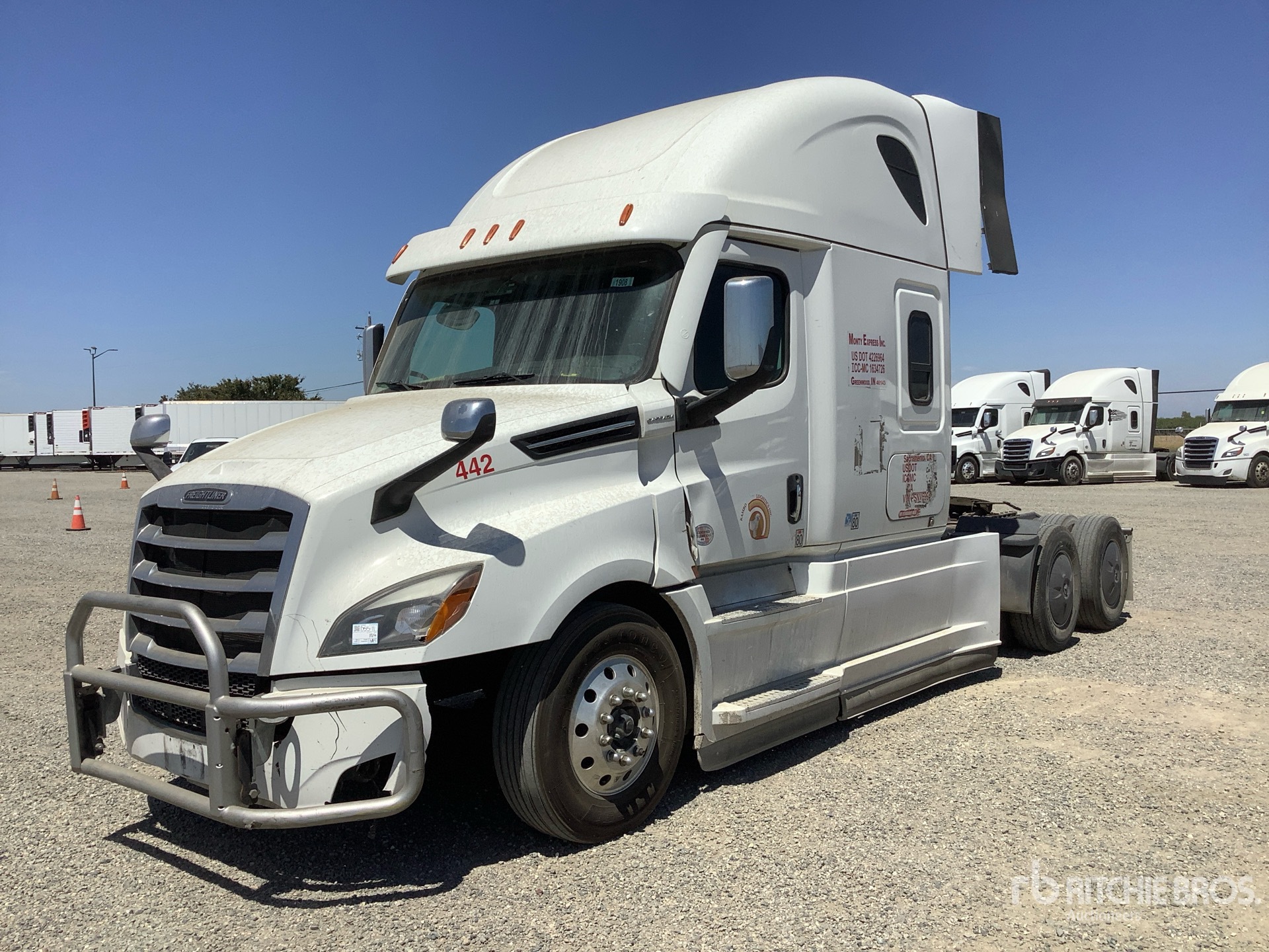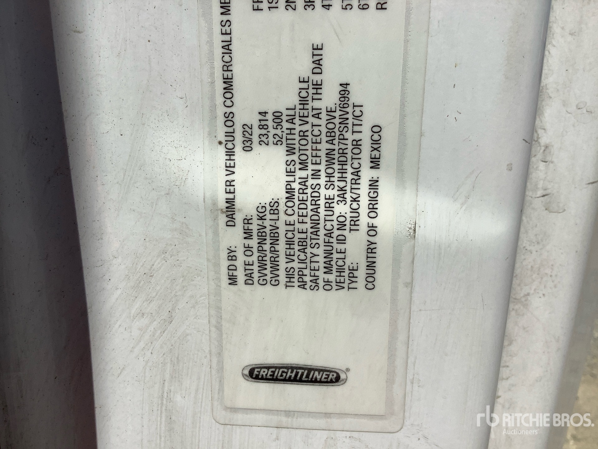 Moteur Detroit DD15 de 505 ch, homologué EPA 2022, 13 046 heures de fonctionnement, transmission automatique Detroit DT12-1650-OHE à 12 rapports, essieu avant de 5 670 kg, essieu arrière de 18 144 kg, PTAC de 23 830 kg, frein moteur, cabine couchette surélevée de 183 cm, lits superposés, chauffage de couchette, empattement de 597 cm, suspension pneumatique, jantes en aluminium, pneus 295/75R22.5, sellette d'attelage coulissante pneumatique, double réservoir de carburant.
