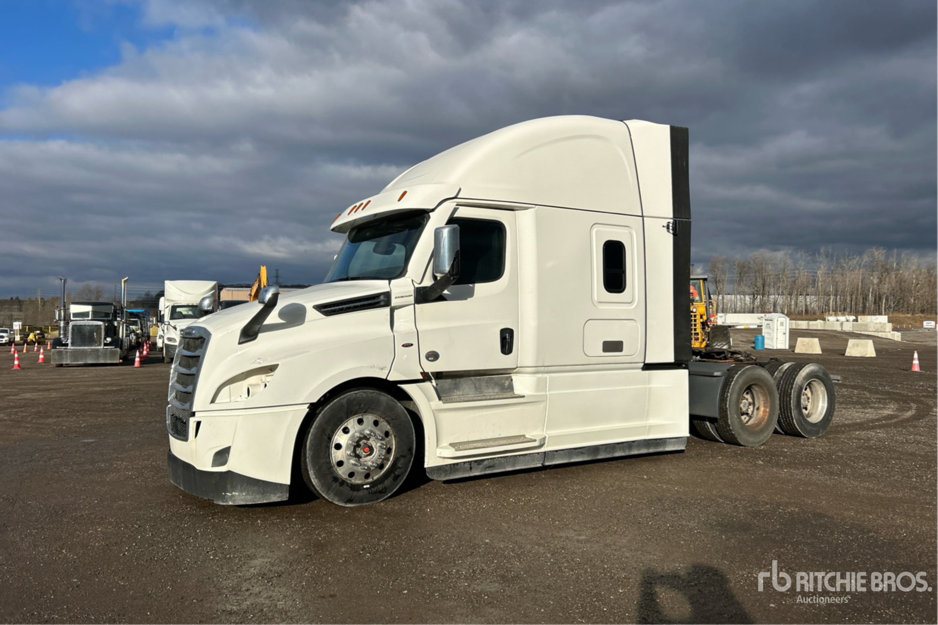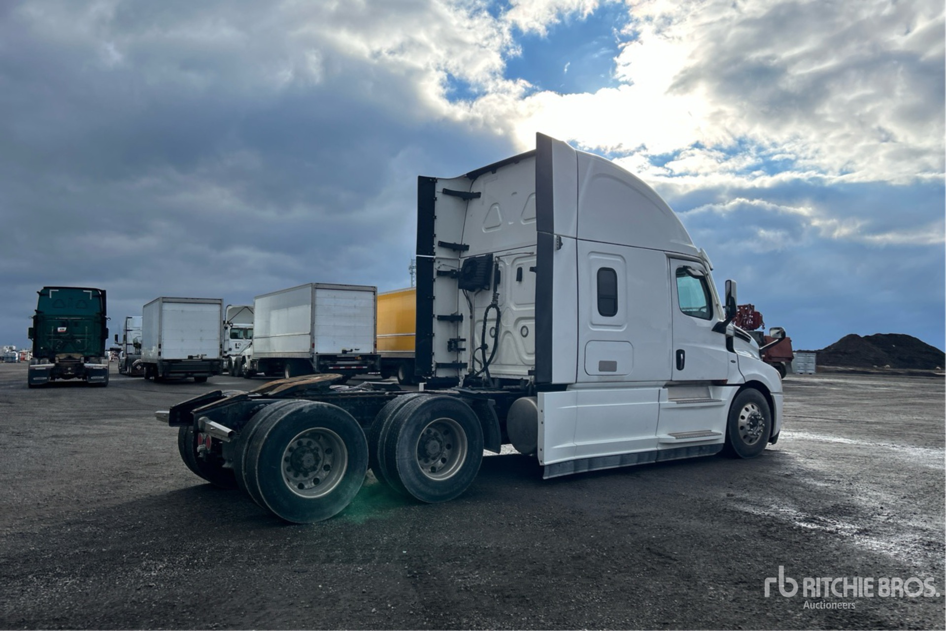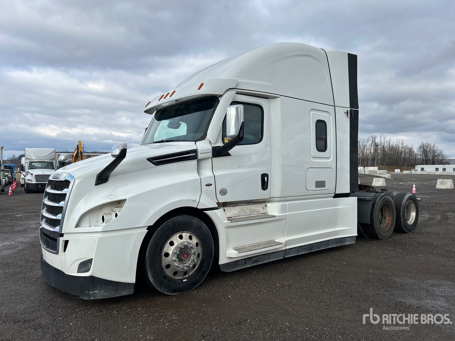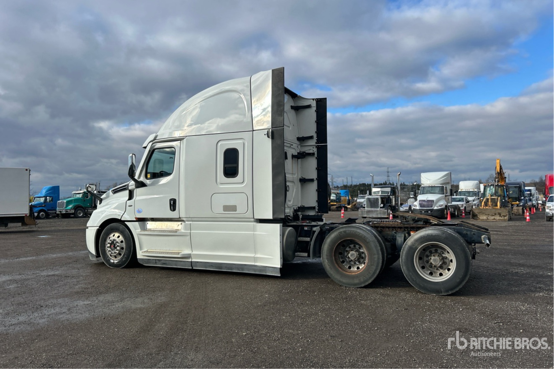Situé sur la voie 21, emplacement 4, moteur Detroit DD15, étiquette EPA américaine 2022, 6720 heures moteur, transmission automatique, frein moteur, double blocage de différentiel, cabine couchette surélevée de 70 pouces, lits superposés, empattement de 233 pouces, suspension pneumatique, roues en aluminium, pneus 11R22.5, sellette d'attelage coulissante pneumatique, double réservoir de carburant