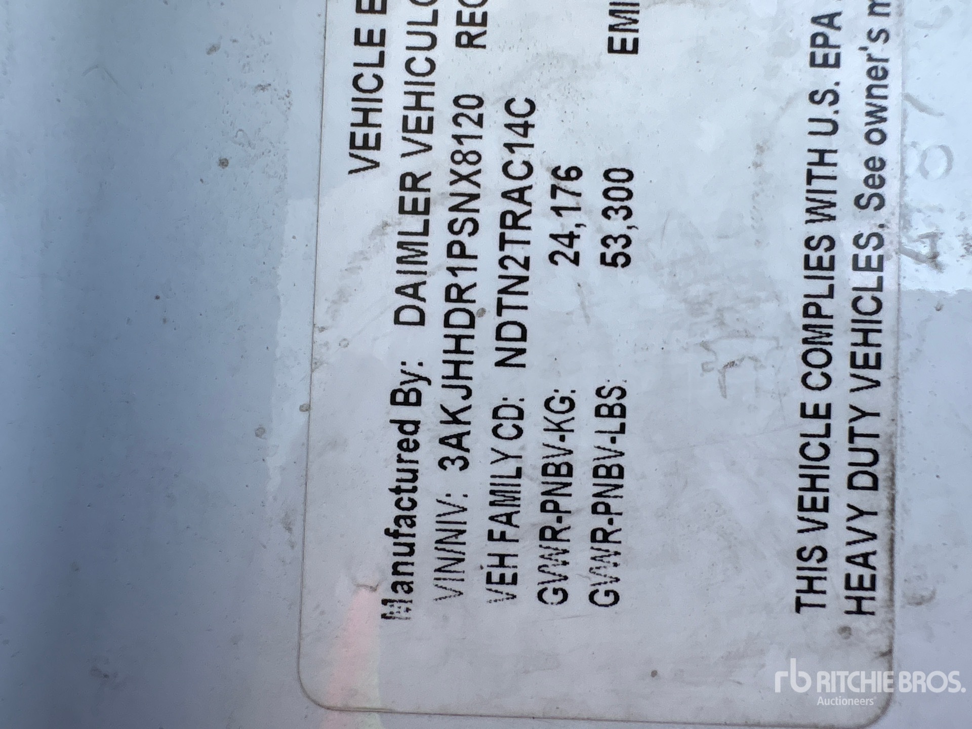 Les Informations détaillées de l’équipement sont d’une portée limitée, et les Encans Ritchie Bros. n’ont inspecté aucun autre aspect ou composant de l’équipement que ceux présentés expressément. Sauf indication précise, nous n’offrons aucune représentation ou garantie, officielle ou implicite, sur l’équipement ou ses composants, sans aucune limite de représentation ou de garantie en ce qui concerne la fonctionnalité, la conformité à toute norme de sécurité ou l’exigence de toute autorité ou agence de régulation en vigueur, l’adaptation à un quelconque usage, ou la valeur commerciale. Il vous est fortement conseillé d’effectuer votre propre inspection détaillée de l’équipement avant d’enchérir.