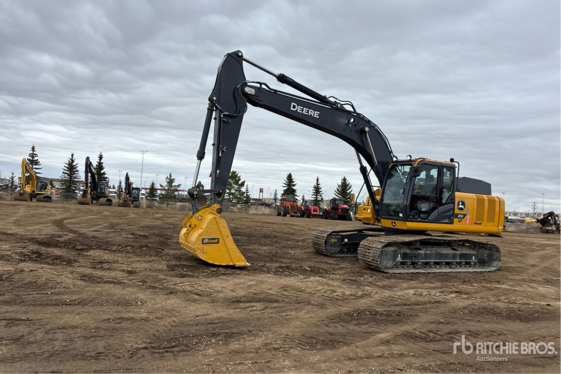 Climatisation, sélecteur de mode de commande, caméra de recul, nécessite du liquide d'échappement diesel, réchauffeur de liquide de refroidissement moteur, soupape d'arrêt d'air positive, bras de 2,84 m, circuit hydraulique auxiliaire, chenilles à triple crampons de 81 cm, attache rapide manuelle, godet de nettoyage de 1,47 m