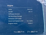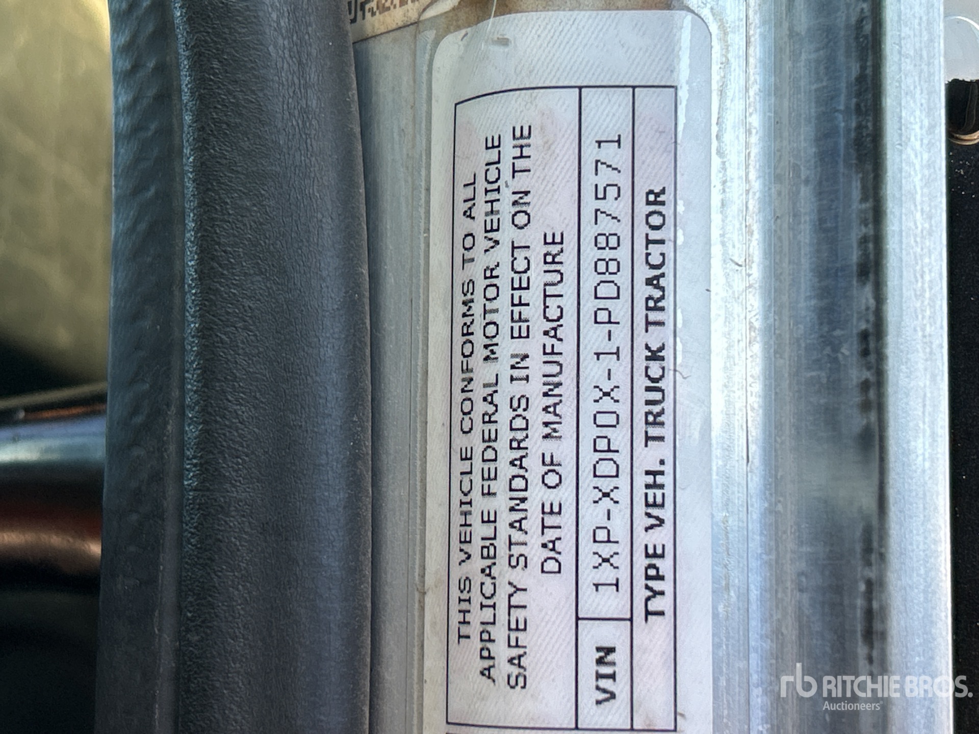 Moteur Paccar MX-13, homologué EPA 2022, 10 593,7 heures de fonctionnement, boîte manuelle à 13 vitesses, essieu avant 5 443 kg, essieu arrière 20 866 kg, PTAC 26 316 kg, frein moteur, empattement 5,83 m, suspension pneumatique, jantes en aluminium, pneus 11R24.5, sellette d'attelage coulissante pneumatique, porte-bagages de cabine