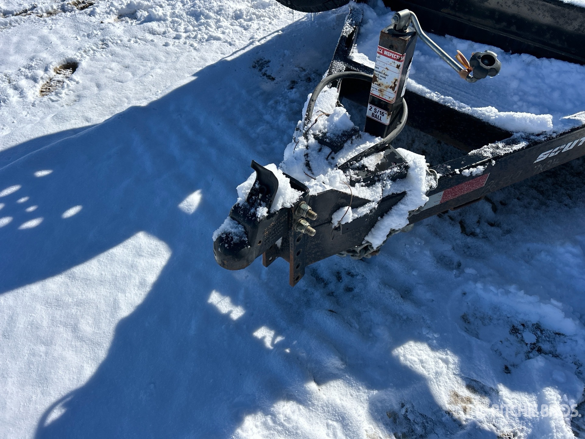Attelage à boule, suspension à ressorts, freins électriques, plateau principal de 7,3 m, hayon fixe de 61 cm, largeur utile du plateau de 2,08 m, largeur hors tout du plateau de 2,13 m, rampes manuelles, pneus 235/80R16, PTAC de 7 000 kg