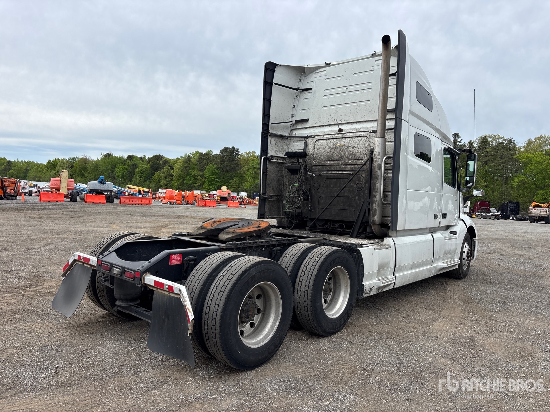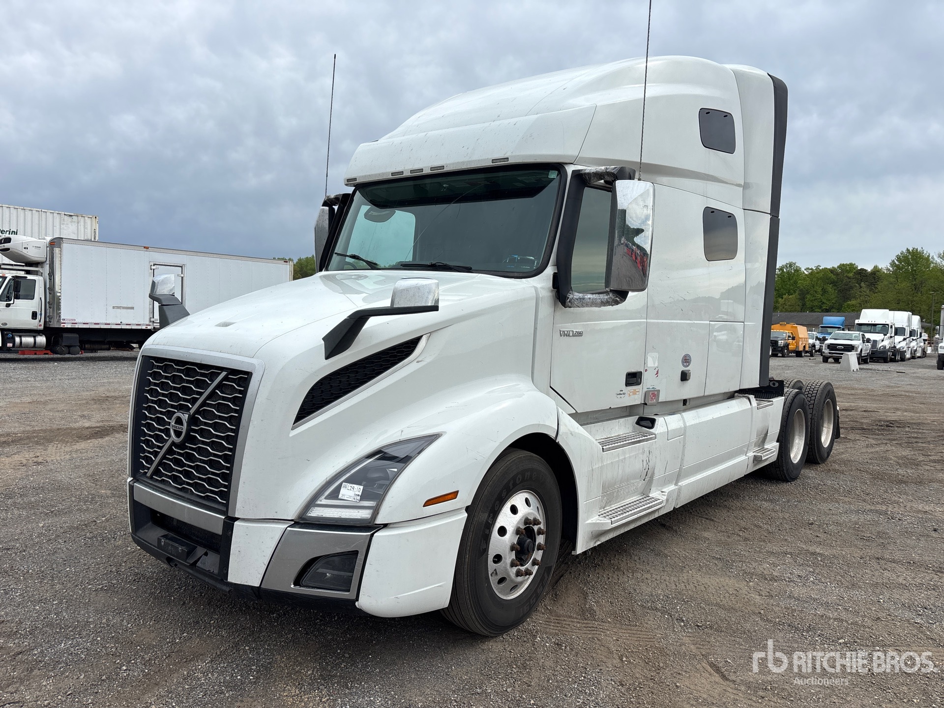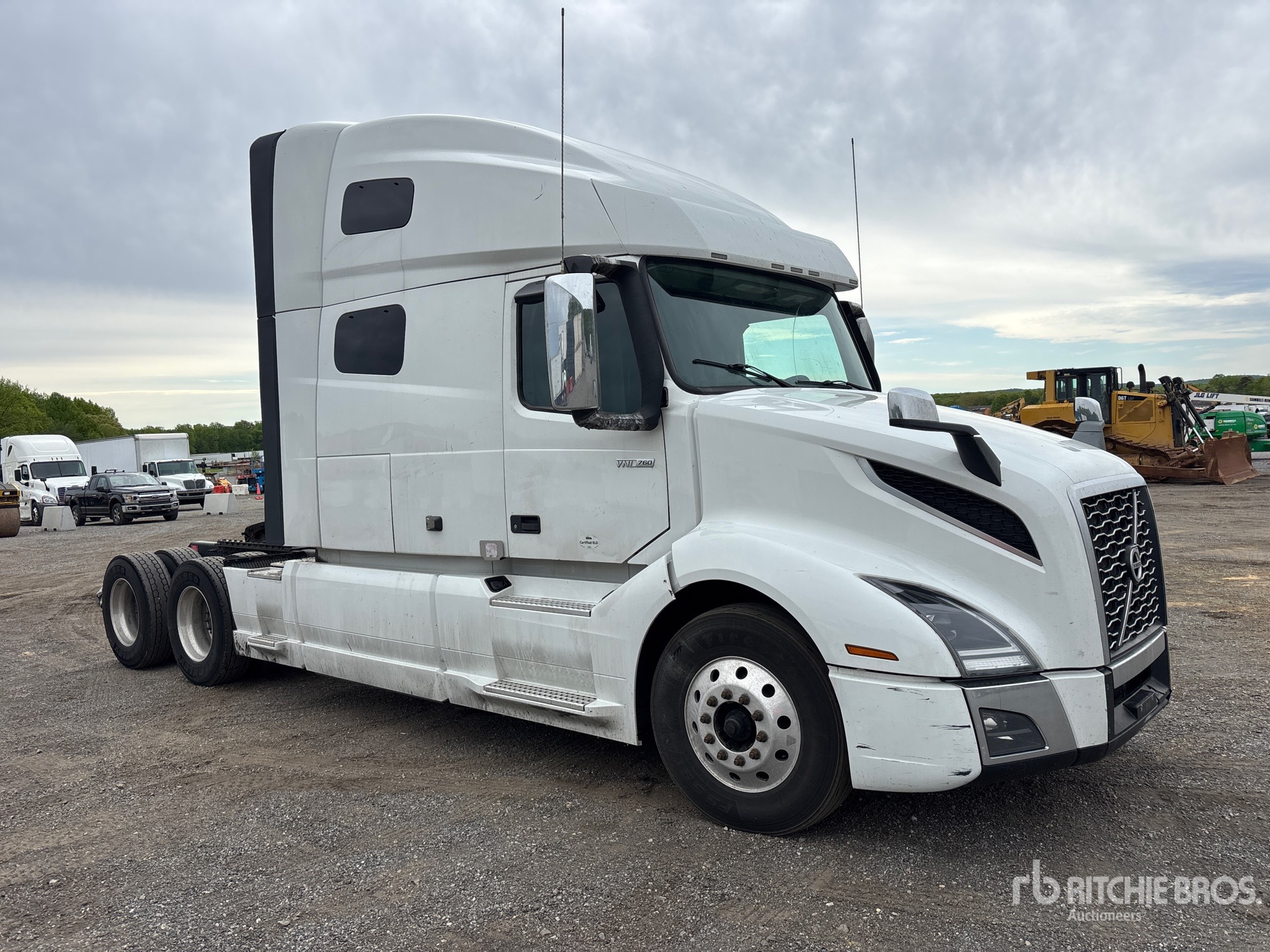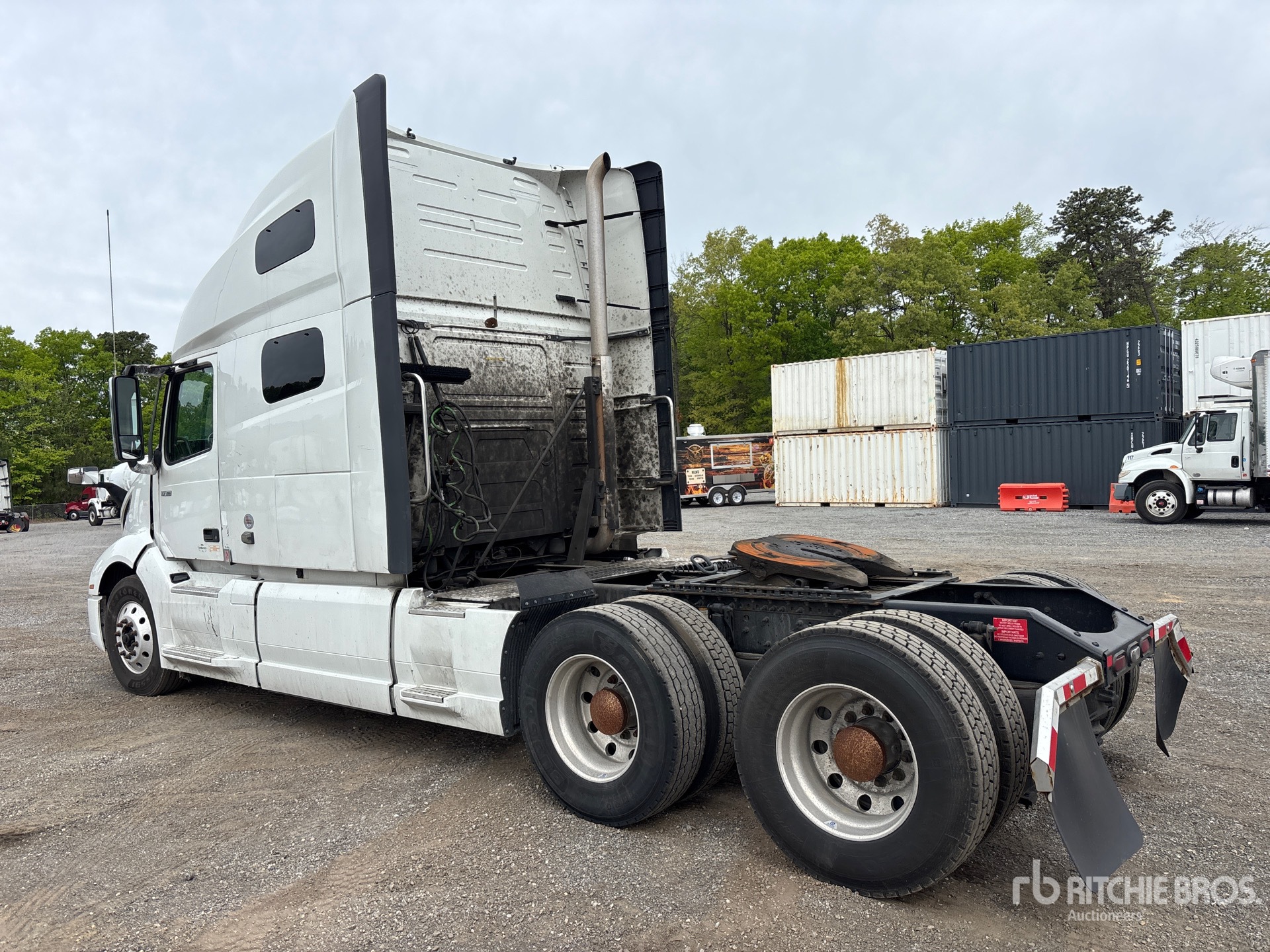 Moteur Volvo D13N, homologué EPA 2023, 12 645 heures moteur, transmission automatisée, cabine couchette surélevée de 155 cm, lits superposés, empattement de 584 cm, suspension pneumatique, jantes en aluminium, pneus 295/75R22.5, sellette d'attelage coulissante pneumatique, double réservoir de carburant