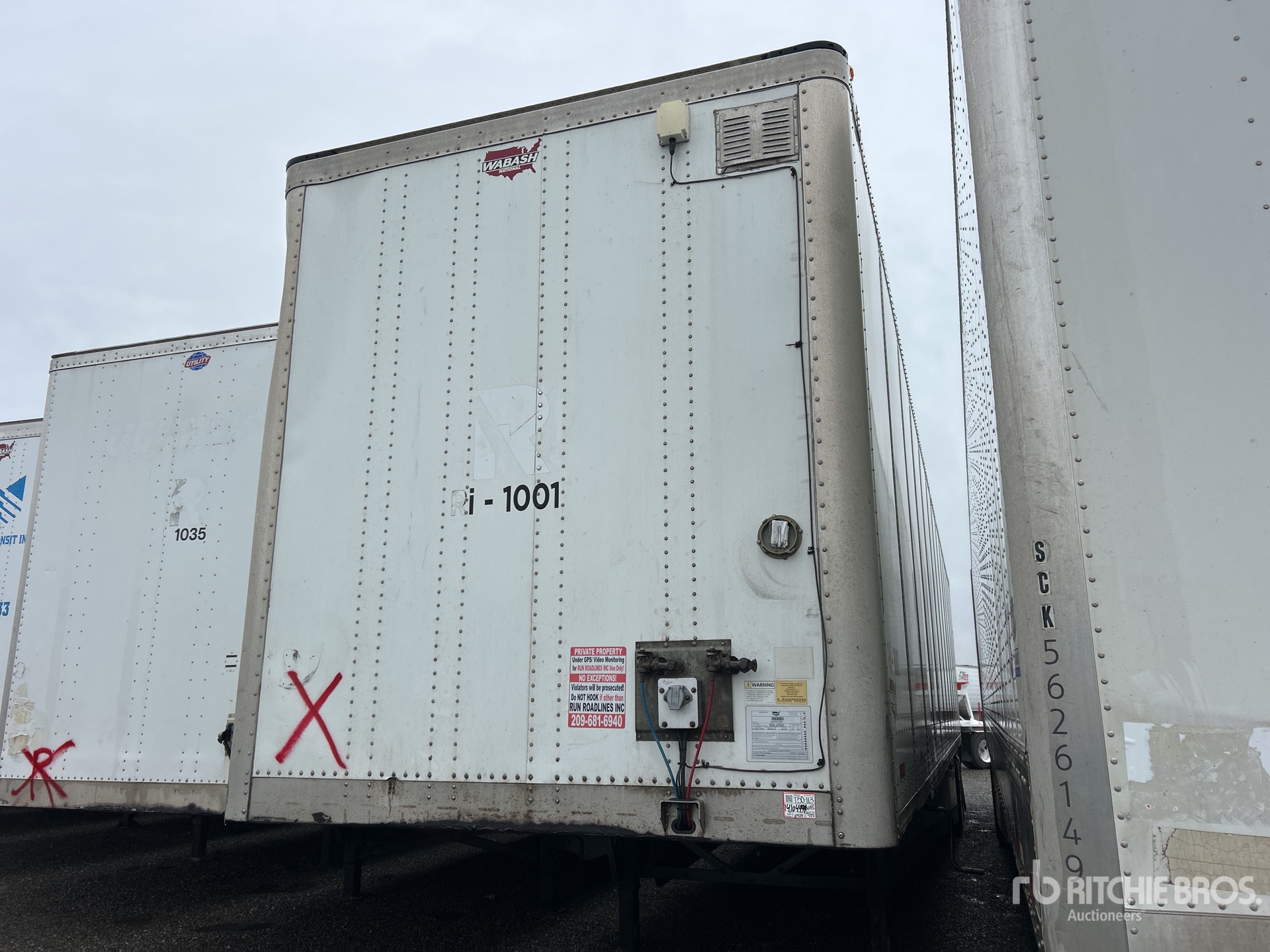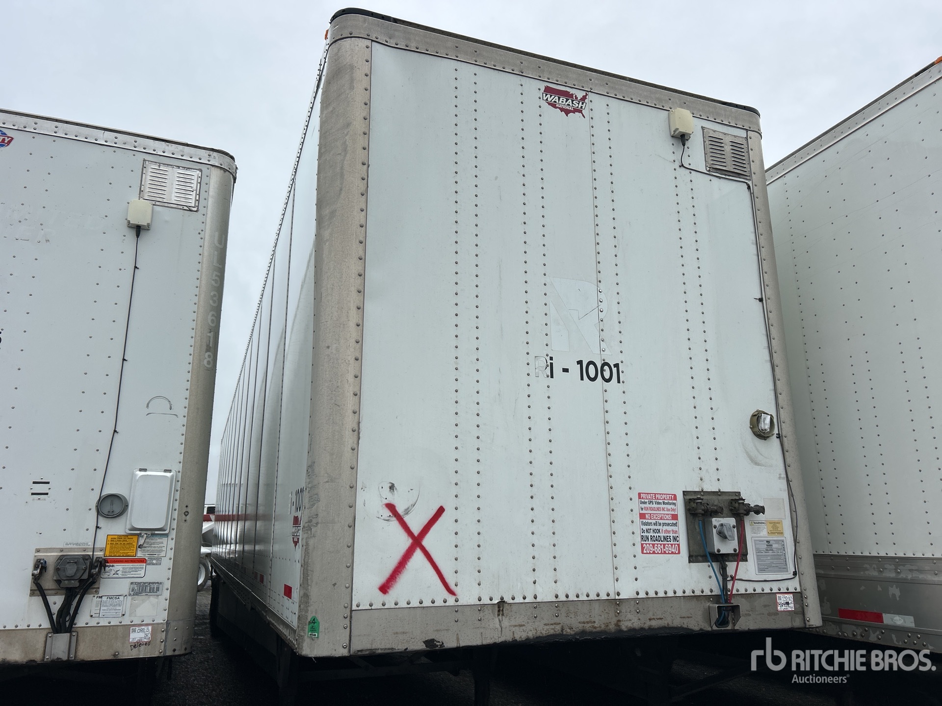 Suspension pneumatique coulissante, jupes latérales, plancher de bois franc, porte battante, pneus 295/75R22.5, PNBV de 68 000 lb