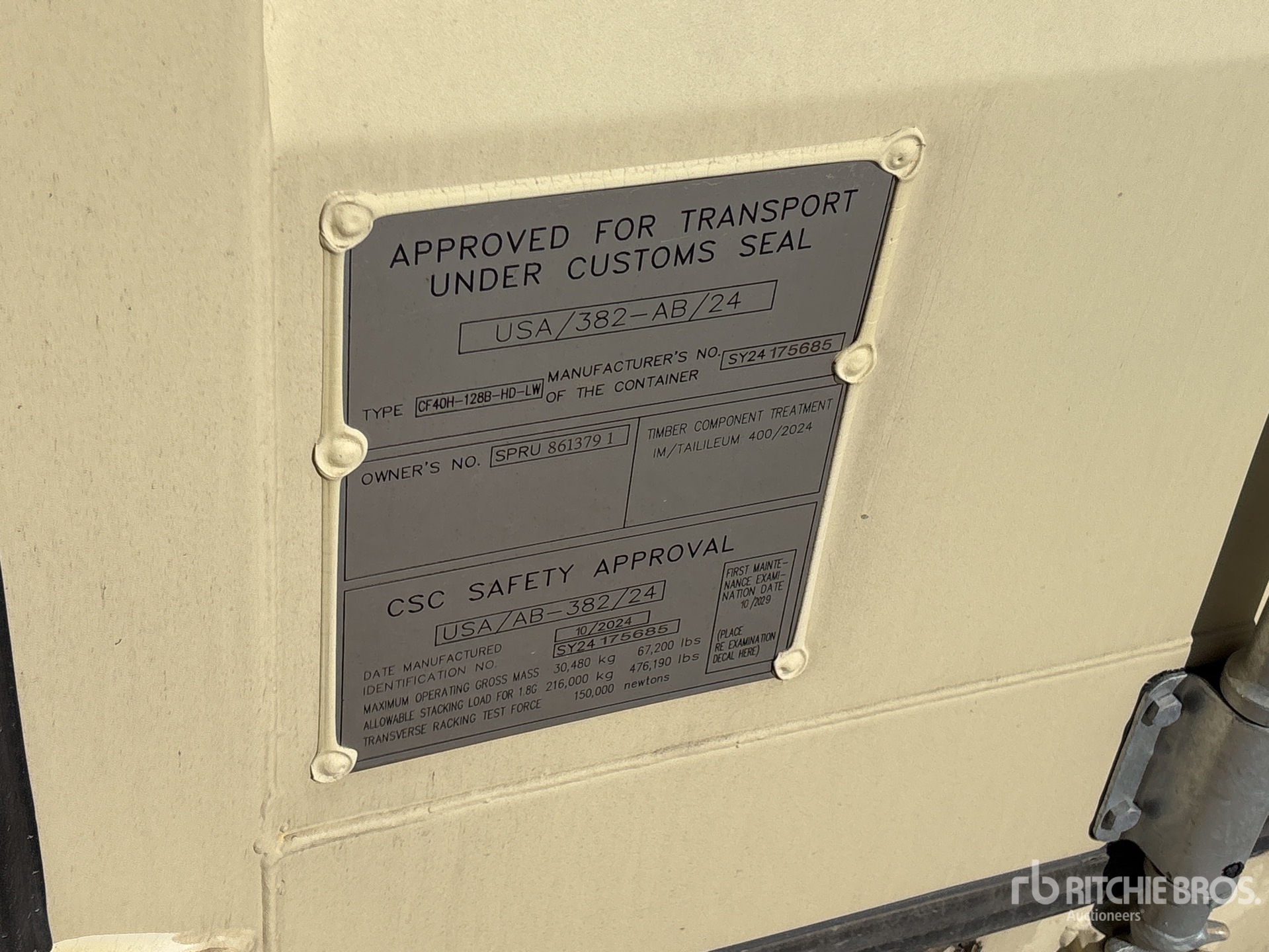 Les Informations détaillées de l’équipement sont d’une portée limitée, et les Encans Ritchie Bros. n’ont inspecté aucun autre aspect ou composant de l’équipement que ceux présentés expressément. Sauf indication précise, nous n’offrons aucune représentation ou garantie, officielle ou implicite, sur l’équipement ou ses composants, sans aucune limite de représentation ou de garantie en ce qui concerne la fonctionnalité, la conformité à toute norme de sécurité ou l’exigence de toute autorité ou agence de régulation en vigueur, l’adaptation à un quelconque usage, ou la valeur commerciale. Il vous est fortement conseillé d’effectuer votre propre inspection détaillée de l’équipement avant d’enchérir.