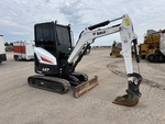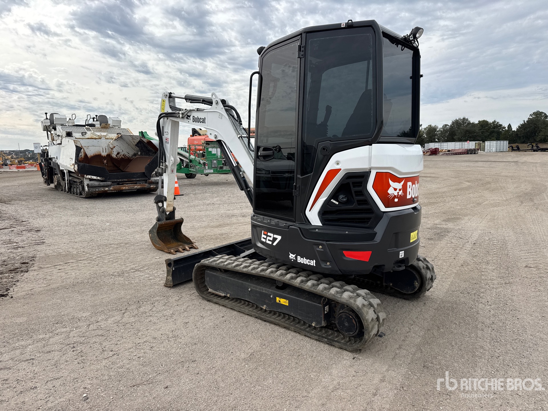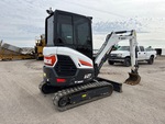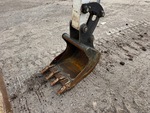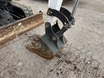Cabine fermée, climatisation, norme Tier 4, étiquette EPA américaine 2023, flèche pivotante, bras de 1,40 m, circuit hydraulique auxiliaire, lame de remblayage, chenilles en caoutchouc de 29 cm, godet de terrassement de 46 cm, support de pouce