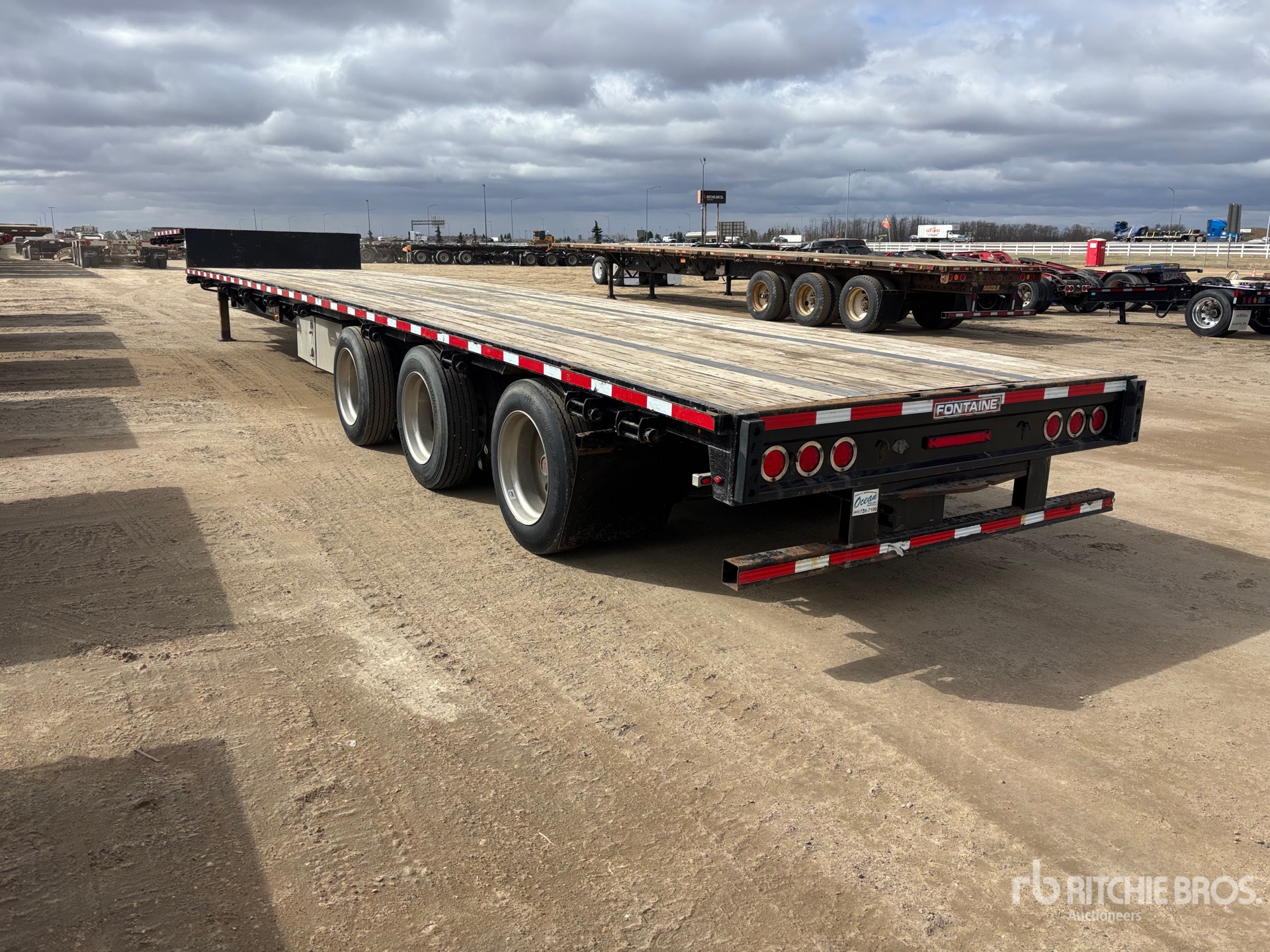 Suspension pneumatique, freins pneumatiques, plateau supérieur de 3,35 m, plateau principal de 12,80 m, largeur utile du plateau de 2,59 m, largeur totale du plateau de 2,59 m, compartiments de rangement, pneus de plateau surélevés, plancher en bois, jantes en aluminium, pneus 255/70R22.5, PTAC de 44 500 kg