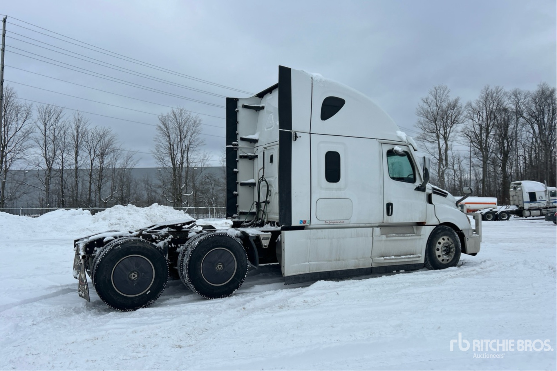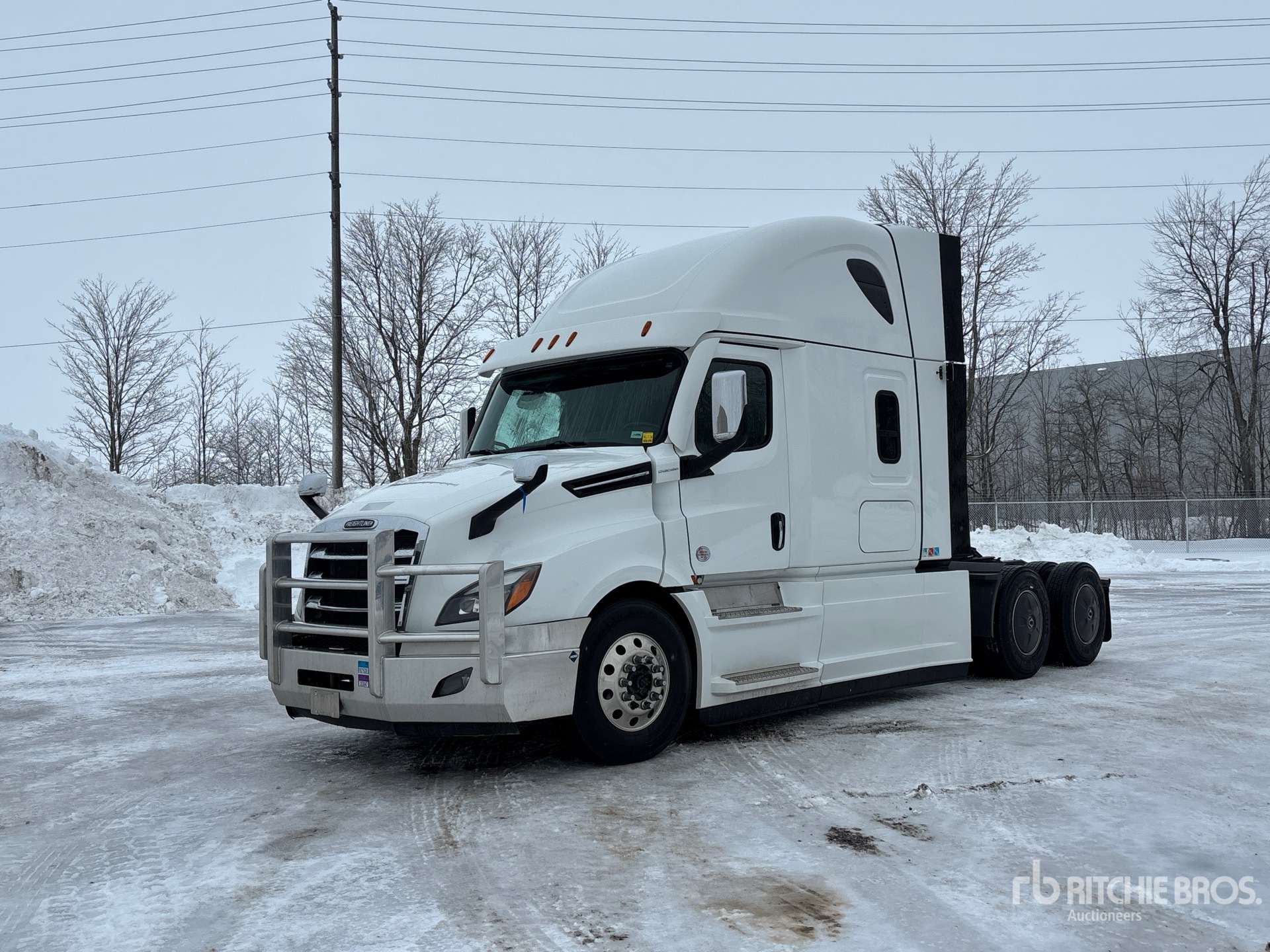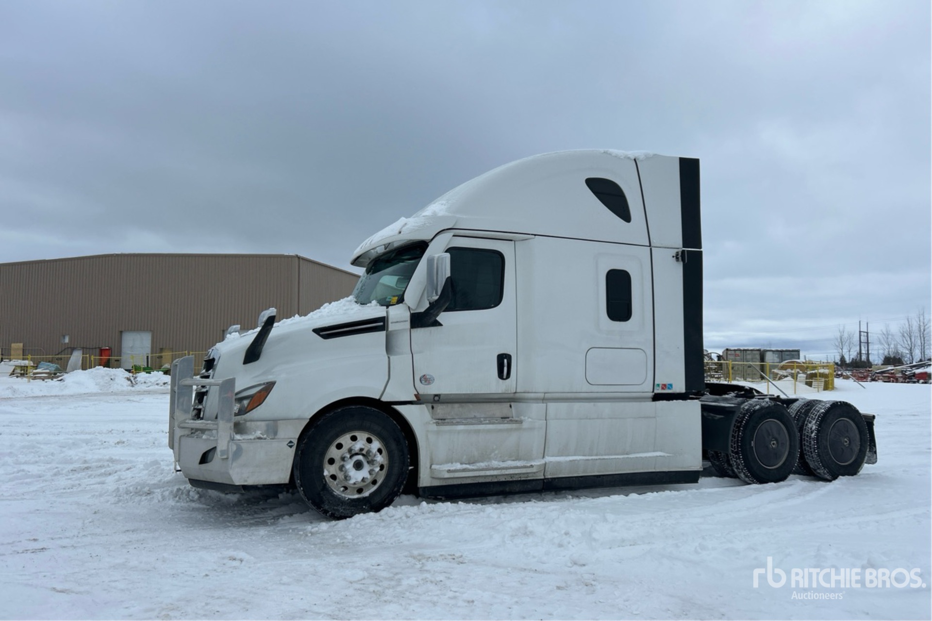 Situé sur la voie 21, emplacement 26, moteur Detroit DD15 de 505 ch, homologué EPA 2023, 7 934 heures moteur, essieu avant de 13 220 lb, essieu arrière de 40 000 lb, PTAC de 53 220 lb, frein moteur, double blocage de différentiel, cabine couchette surélevée de 70 po, lits superposés, empattement de 229 po, suspension pneumatique, jantes en aluminium, pneus 11R22.5, sellette d'attelage coulissante pneumatique, double réservoir de carburant.