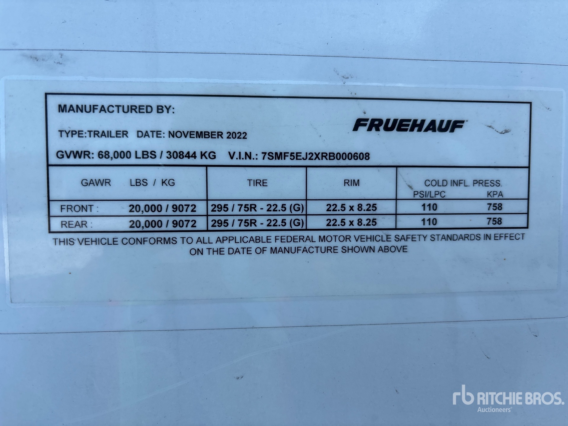 Les Informations détaillées de l’équipement sont d’une portée limitée, et les Encans Ritchie Bros. n’ont inspecté aucun autre aspect ou composant de l’équipement que ceux présentés expressément. Sauf indication précise, nous n’offrons aucune représentation ou garantie, officielle ou implicite, sur l’équipement ou ses composants, sans aucune limite de représentation ou de garantie en ce qui concerne la fonctionnalité, la conformité à toute norme de sécurité ou l’exigence de toute autorité ou agence de régulation en vigueur, l’adaptation à un quelconque usage, ou la valeur commerciale. Il vous est fortement conseillé d’effectuer votre propre inspection détaillée de l’équipement avant d’enchérir.