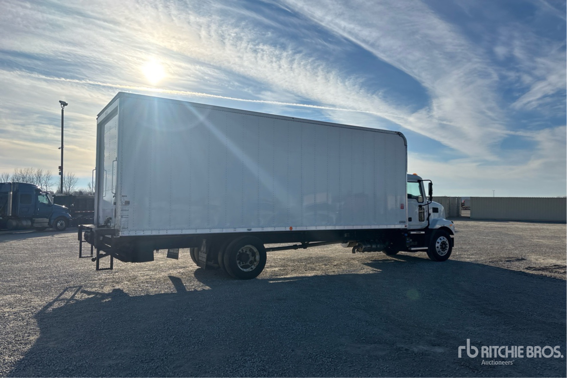Moteur diesel Cummins B6.7 260, 6 cylindres, 6,7 L, 260 ch, homologué EPA (États-Unis) 2023, 7 712 heures de fonctionnement, frein moteur, transmission automatique, essieu avant de 4 536 kg, essieu arrière de 8 618 kg, PTAC de 11 790 kg, cabine à suspension pneumatique, jantes avant en aluminium, pneus avant 295/75R22.5, pneus arrière 275/80R22.5, empattement de 6,88 m, châssis Lyncoach de 6,71 m x 2,59 m x 2,59 m, hayon élévateur