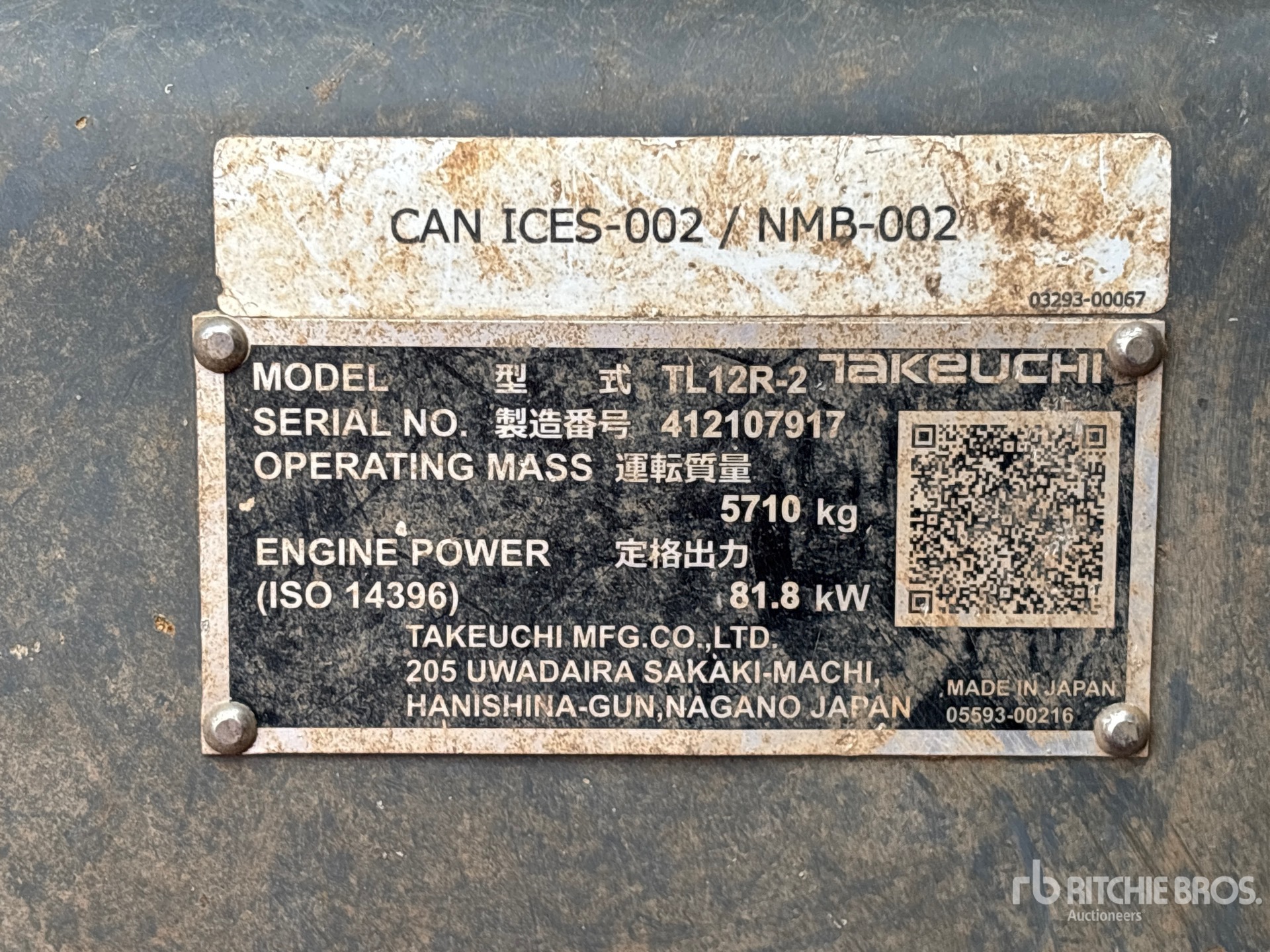 Les Informations détaillées de l’équipement sont d’une portée limitée, et les Encans Ritchie Bros. n’ont inspecté aucun autre aspect ou composant de l’équipement que ceux présentés expressément. Sauf indication précise, nous n’offrons aucune représentation ou garantie, officielle ou implicite, sur l’équipement ou ses composants, sans aucune limite de représentation ou de garantie en ce qui concerne la fonctionnalité, la conformité à toute norme de sécurité ou l’exigence de toute autorité ou agence de régulation en vigueur, l’adaptation à un quelconque usage, ou la valeur commerciale. Il vous est fortement conseillé d’effectuer votre propre inspection détaillée de l’équipement avant d’enchérir.