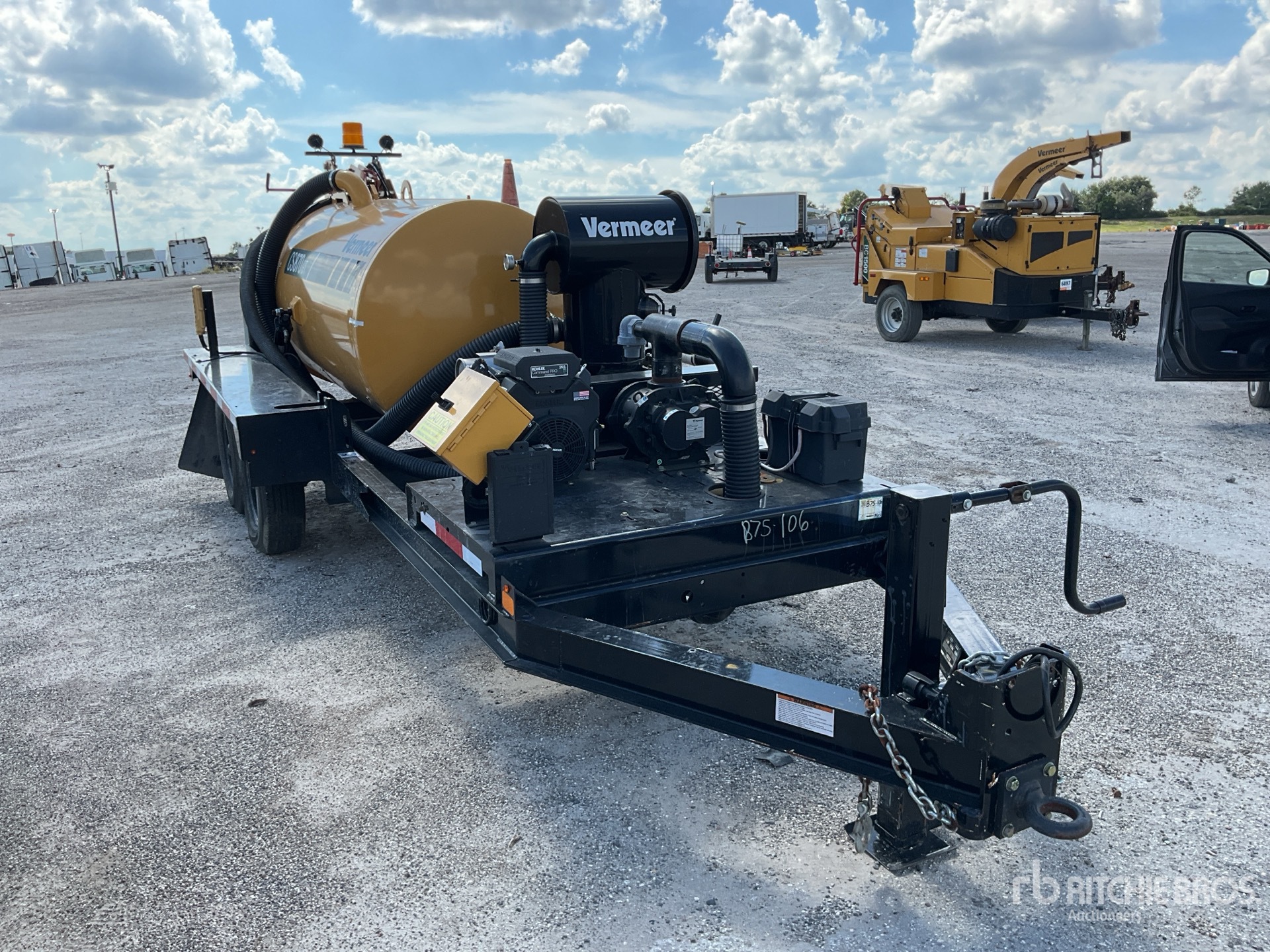 Attelage à anneau Lunette, essieu de torsion, réservoir à débris en acier Vermeer, enrouleur de tuyau arrière, système de lavage, tuyau d'aspiration de 10 cm, pompe entraînée par le moteur, souffleur Vermeer, télécommande avec cordon, pneus 235/80R16, PTAC de 6 350 kg, homologation EPA américaine 2024, moteur à essence Kohler