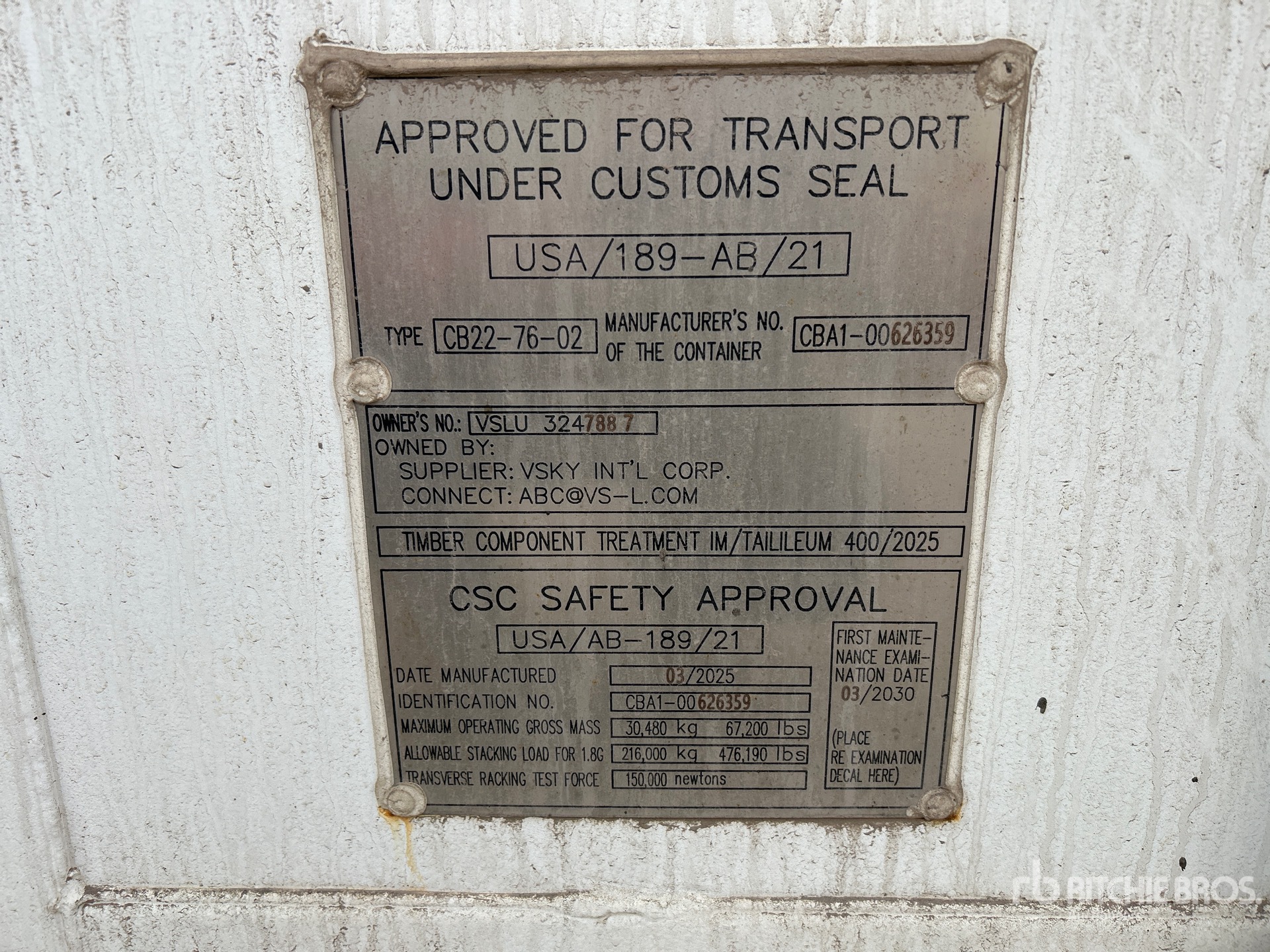 Les dimensions données ne sont qu’une estimation. Les dimensions réelles pour le chargement peuvent varier en fonction de la hauteur du camion/remorque et de la configuration/position de la machine une fois chargée. L’acheteur est responsable de la prise de mesures de toutes les charges avant de quitter le site d’enchères, et ce, afin de s’assurer que la charge peut être transportée en toute sécurité. Toutes les dimensions doivent être vérifiées par l’acheteur. Veuillez ne pas vous fier à ces dimensions pour le transport.