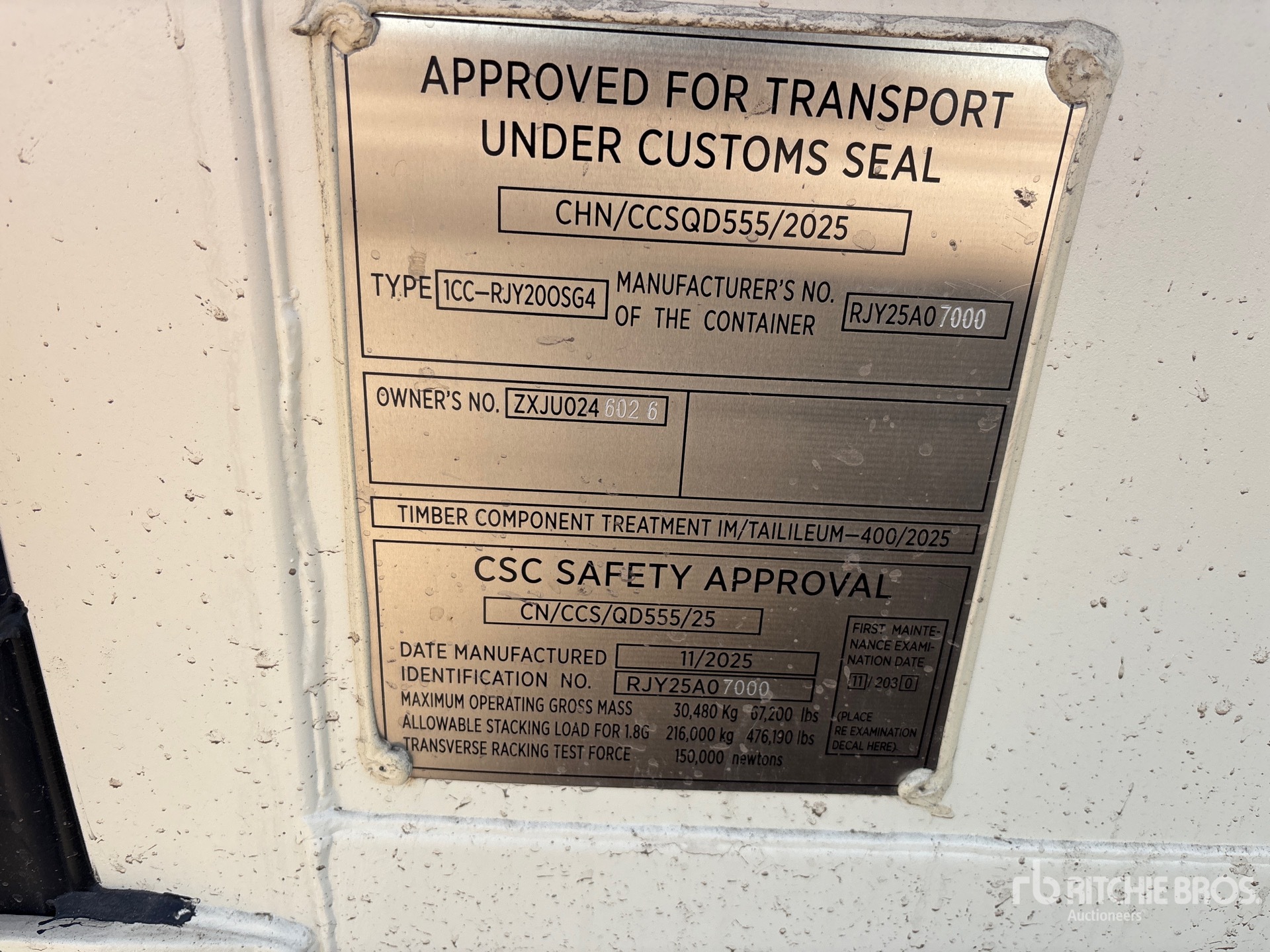Les Informations détaillées de l’équipement sont d’une portée limitée, et les Encans Ritchie Bros. n’ont inspecté aucun autre aspect ou composant de l’équipement que ceux présentés expressément. Sauf indication précise, nous n’offrons aucune représentation ou garantie, officielle ou implicite, sur l’équipement ou ses composants, sans aucune limite de représentation ou de garantie en ce qui concerne la fonctionnalité, la conformité à toute norme de sécurité ou l’exigence de toute autorité ou agence de régulation en vigueur, l’adaptation à un quelconque usage, ou la valeur commerciale. Il vous est fortement conseillé d’effectuer votre propre inspection détaillée de l’équipement avant d’enchérir.