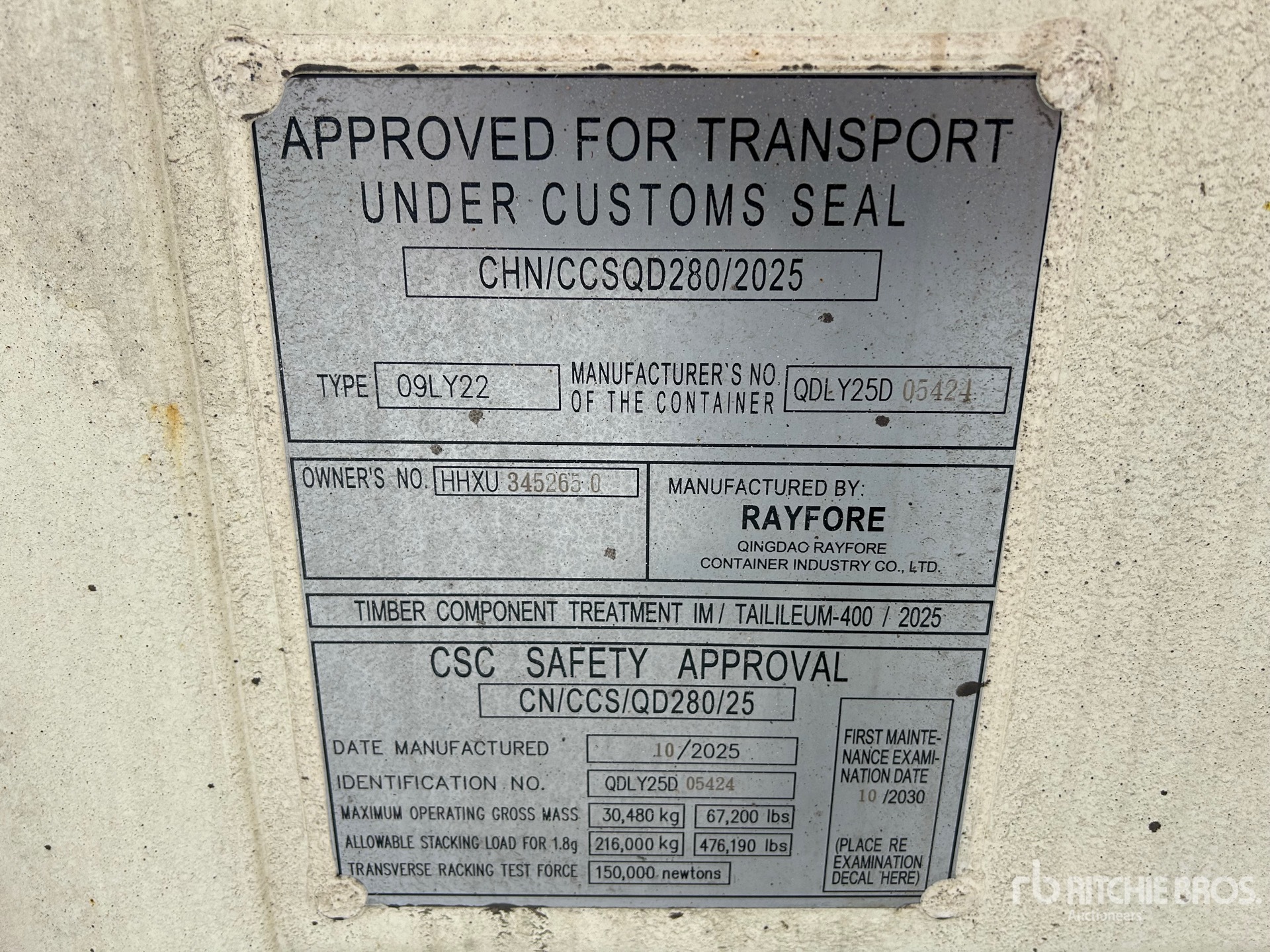 Les dimensions données ne sont qu’une estimation. Les dimensions réelles pour le chargement peuvent varier en fonction de la hauteur du camion/remorque et de la configuration/position de la machine une fois chargée. L’acheteur est responsable de la prise de mesures de toutes les charges avant de quitter le site d’enchères, et ce, afin de s’assurer que la charge peut être transportée en toute sécurité. Toutes les dimensions doivent être vérifiées par l’acheteur. Veuillez ne pas vous fier à ces dimensions pour le transport.