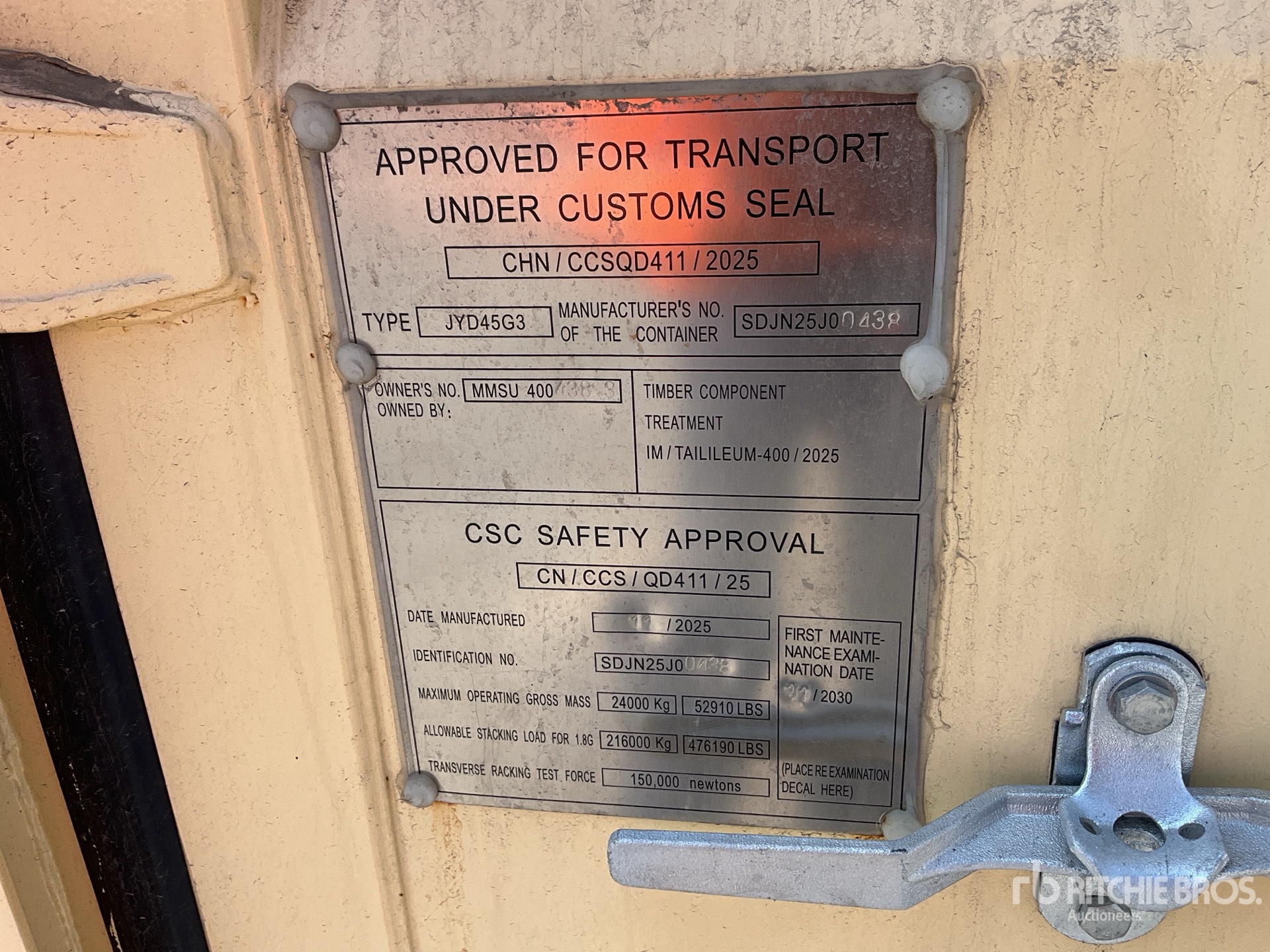 Les Informations détaillées de l’équipement sont d’une portée limitée, et les Encans Ritchie Bros. n’ont inspecté aucun autre aspect ou composant de l’équipement que ceux présentés expressément. Sauf indication précise, nous n’offrons aucune représentation ou garantie, officielle ou implicite, sur l’équipement ou ses composants, sans aucune limite de représentation ou de garantie en ce qui concerne la fonctionnalité, la conformité à toute norme de sécurité ou l’exigence de toute autorité ou agence de régulation en vigueur, l’adaptation à un quelconque usage, ou la valeur commerciale. Il vous est fortement conseillé d’effectuer votre propre inspection détaillée de l’équipement avant d’enchérir.