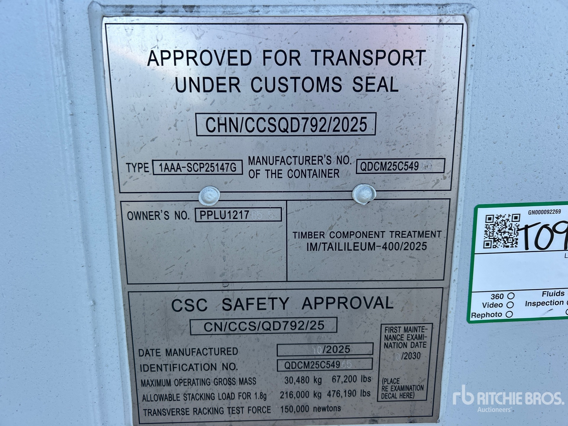 Un employé qualifié de Ritchie Bros. a recueilli des informations détaillées sur l’équipement et a effectué des tests fonctionnels sur les composants clés de cet équipement. Vous, ou un mandataire, pouvez également inspecter tous les articles sur place avant d’enchérir le jour de la vente.