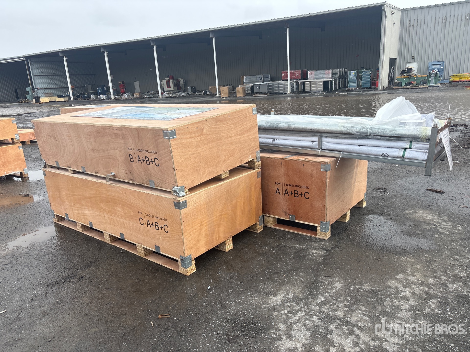 Quantité de (3) boîtes - Construit (1) bâtiment de stockage, avec (2) portes électriques à enroulement