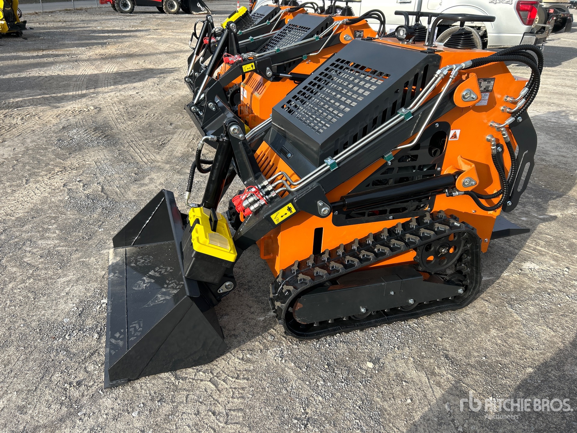 Poste de conduite ouvert, direction par joystick, courroies de chenille de 18 cm, godet de 102 cm