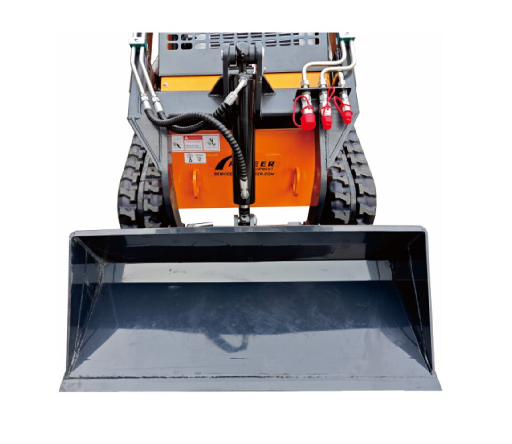 Poste de conduite ouvert, direction par joystick, courroies de chenille de 18 cm, godet de 102 cm