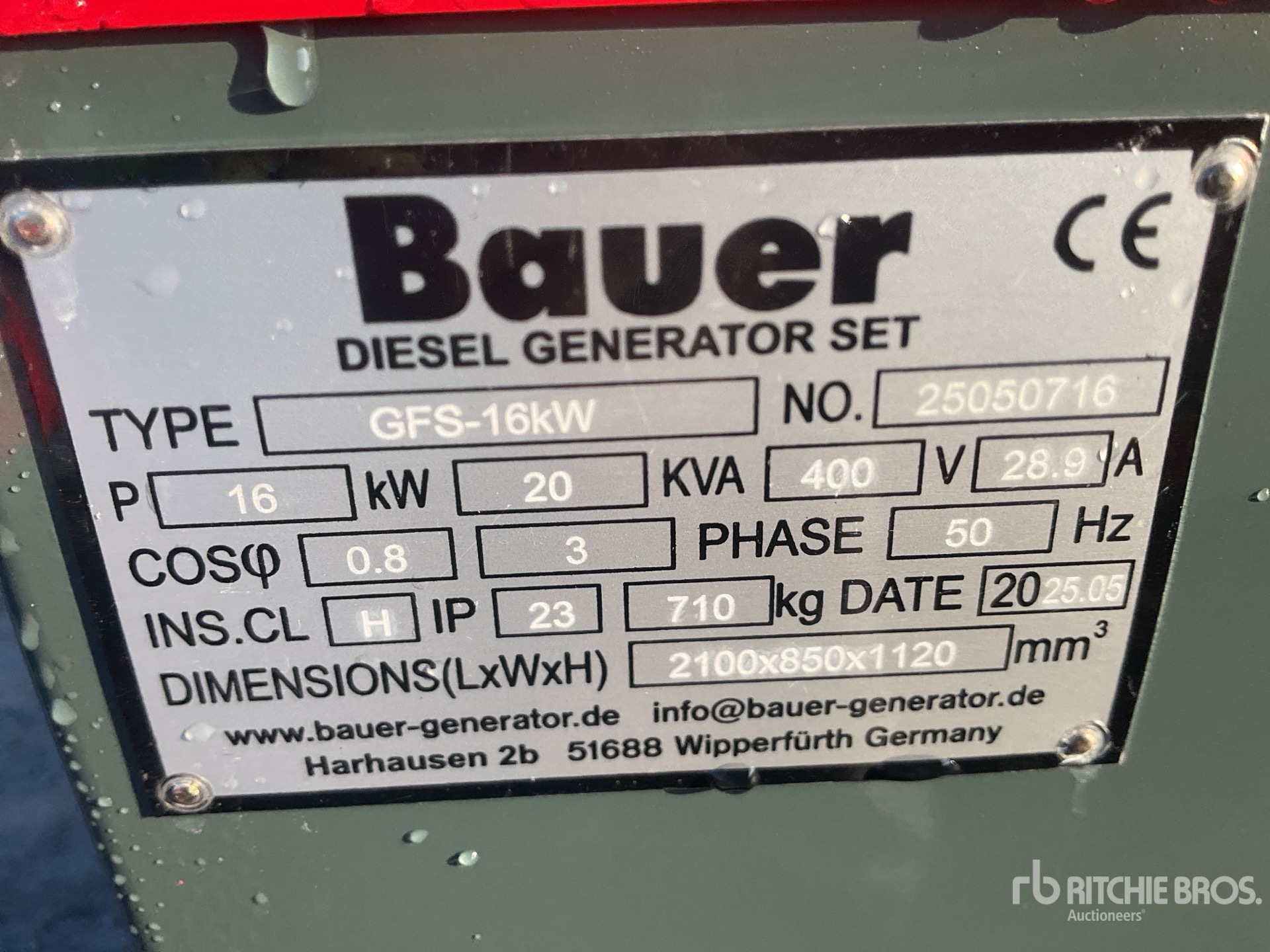 2025 Bauer Generatoren GFS-16 ATS 16kW/20kVA Groupe électrogène