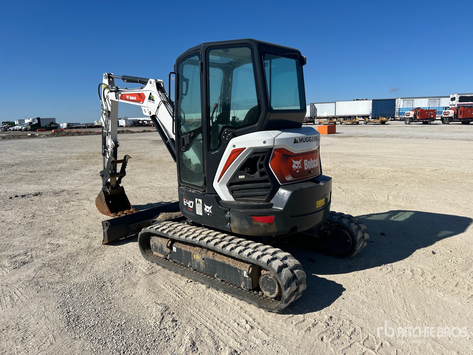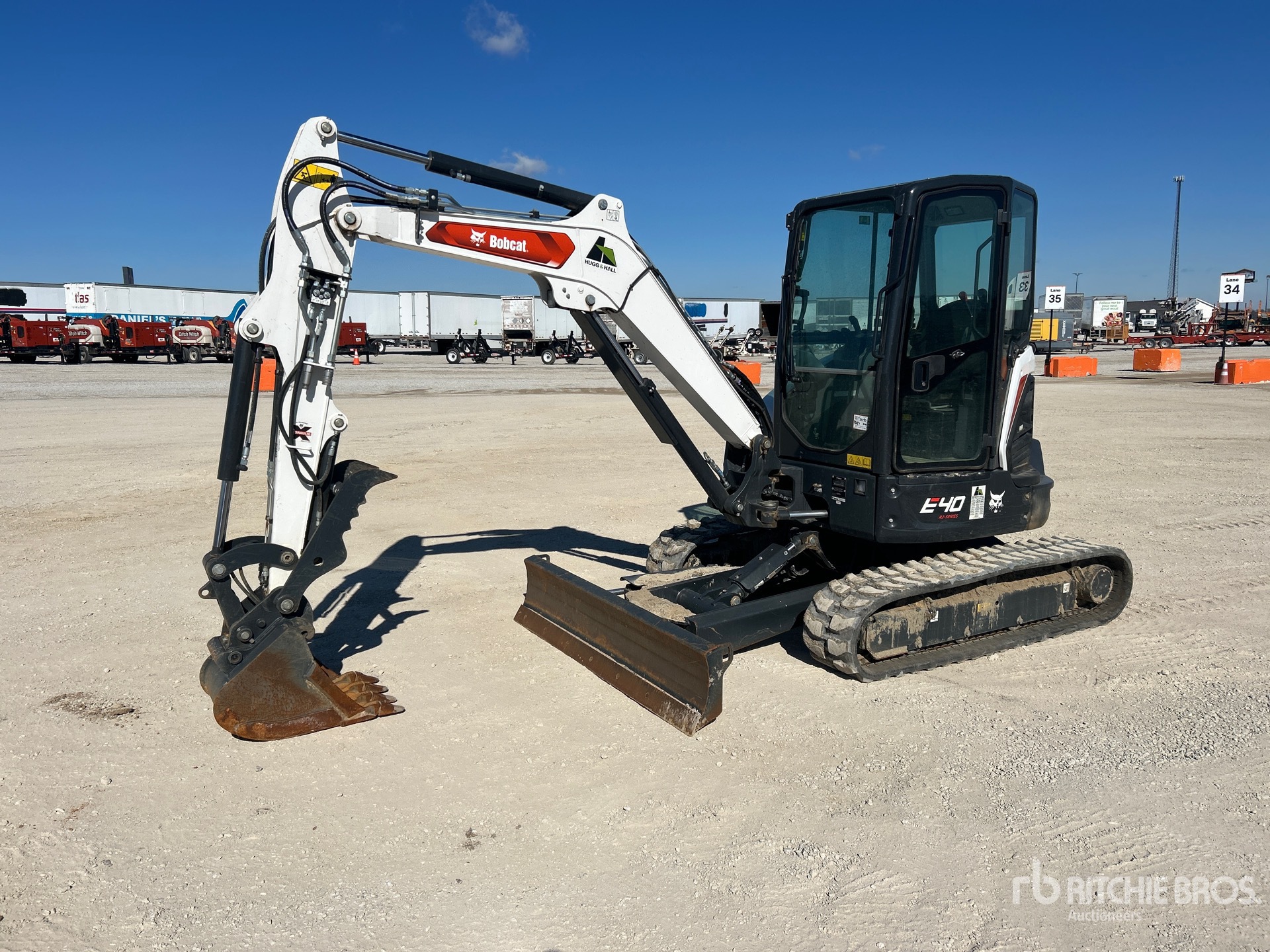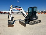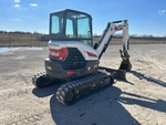 Cabine fermée, climatisation, homologation EPA américaine 2024, flèche pivotante, bras de 1,63 m, circuit hydraulique auxiliaire, lame à angle motorisé, chenilles en caoutchouc de 34,3 cm, attache rapide hydraulique, godet de terrassement de 45,7 cm, pince hydraulique