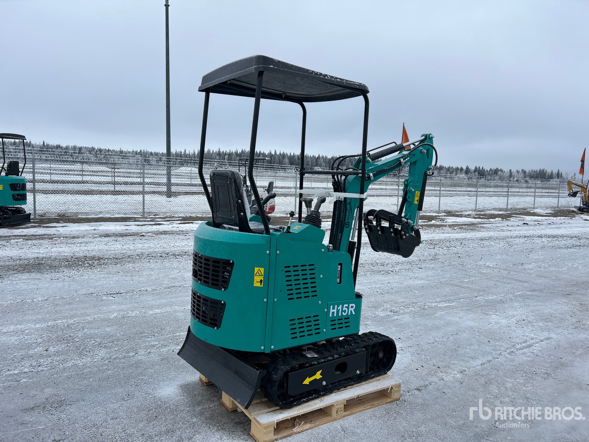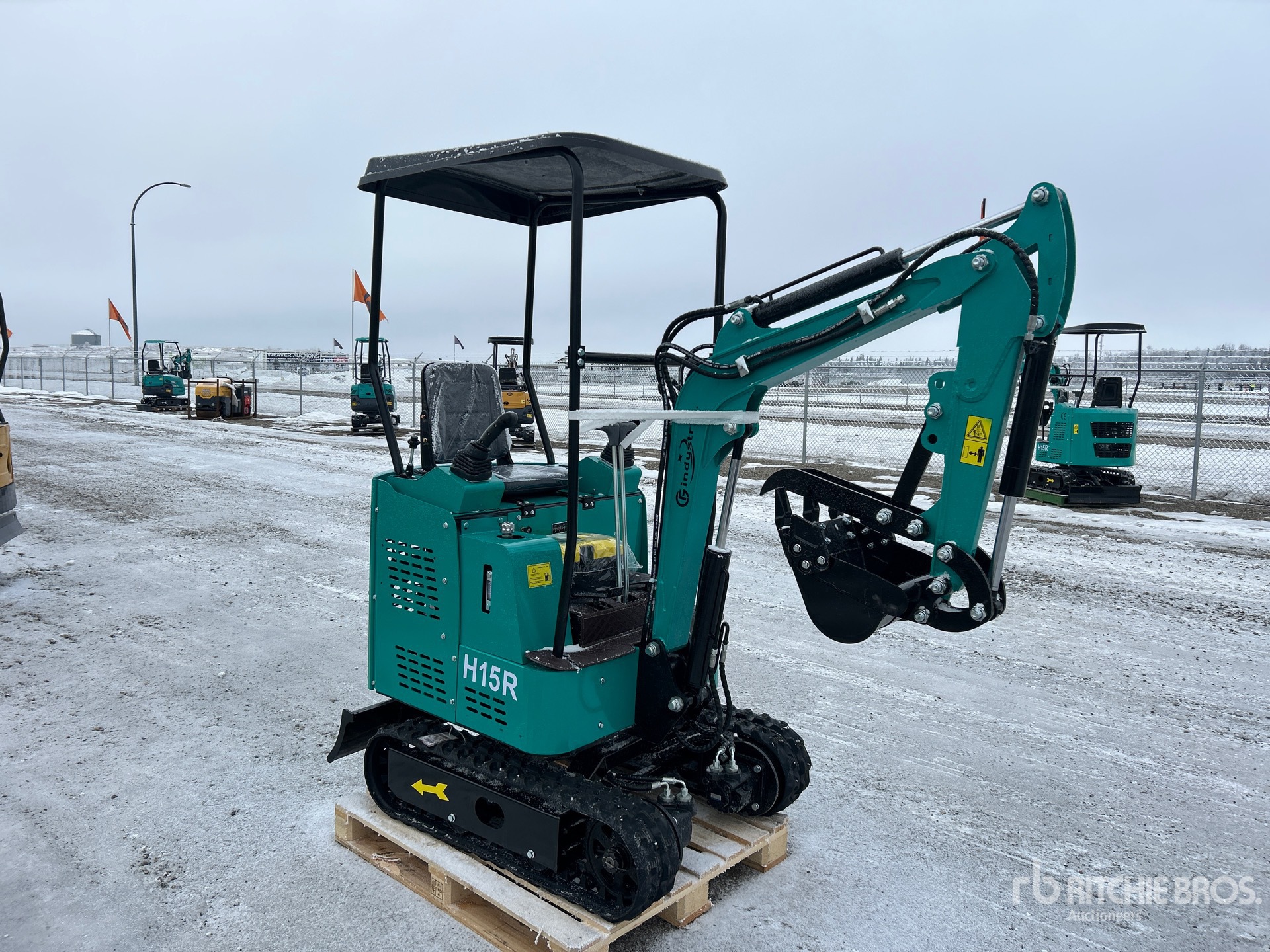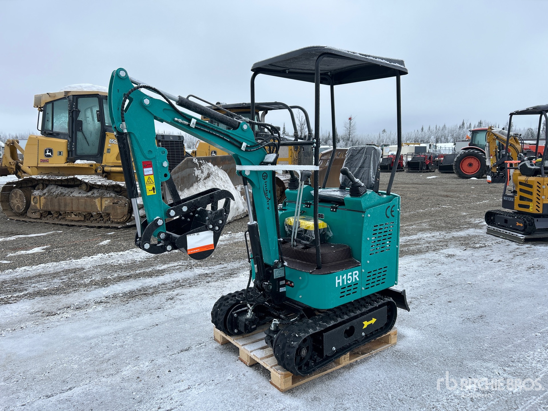 Balancier de 2 pi 6 po, plomberie hydraulique auxiliaire, lame de remblayage, chenilles en caoutchouc de 7 po, godet de creusage de 14 po, pouce manuel