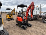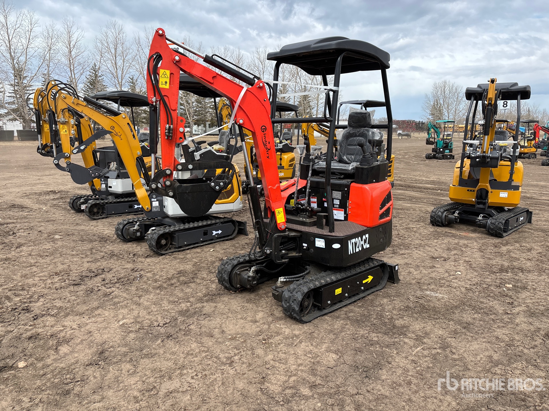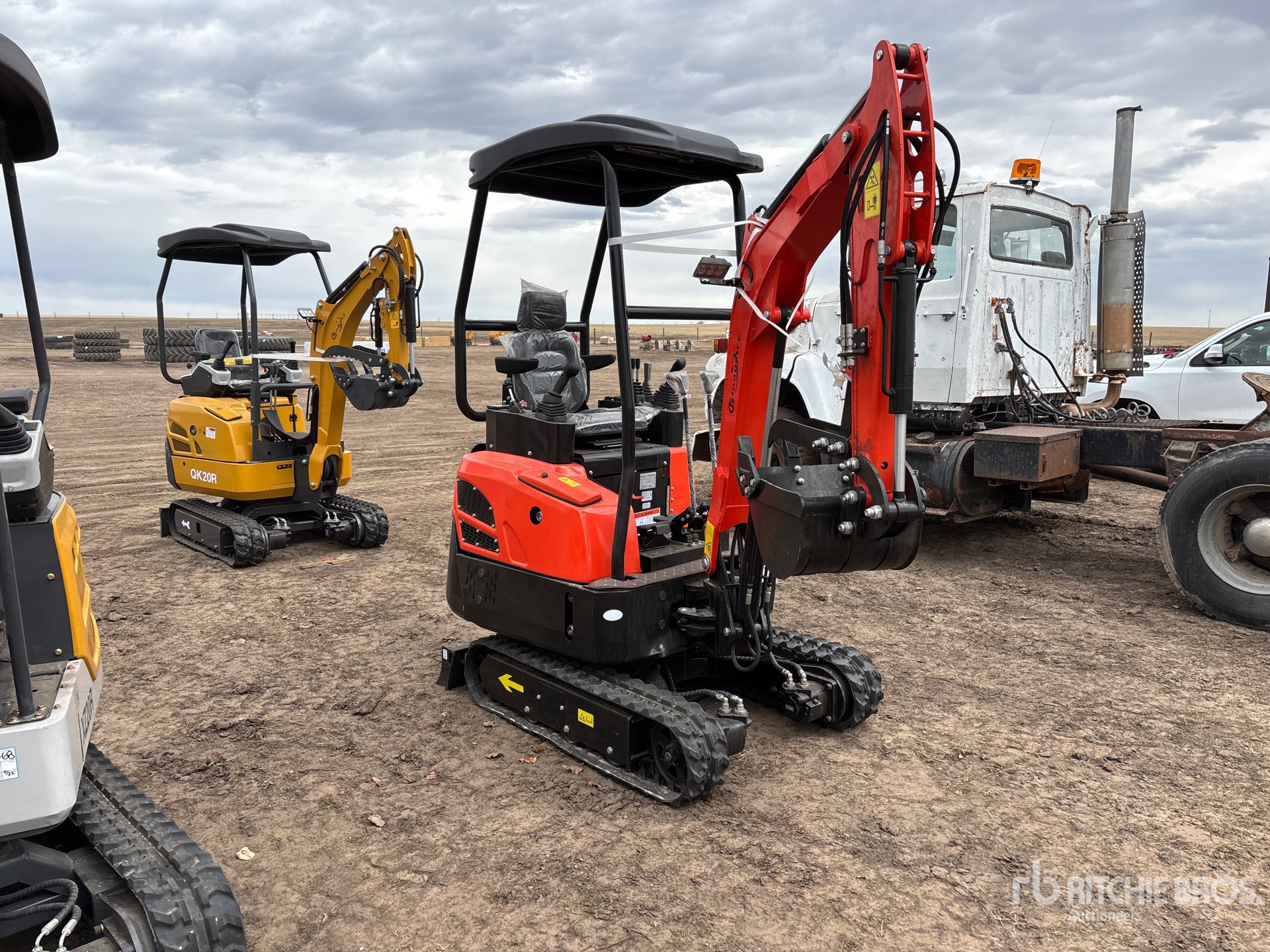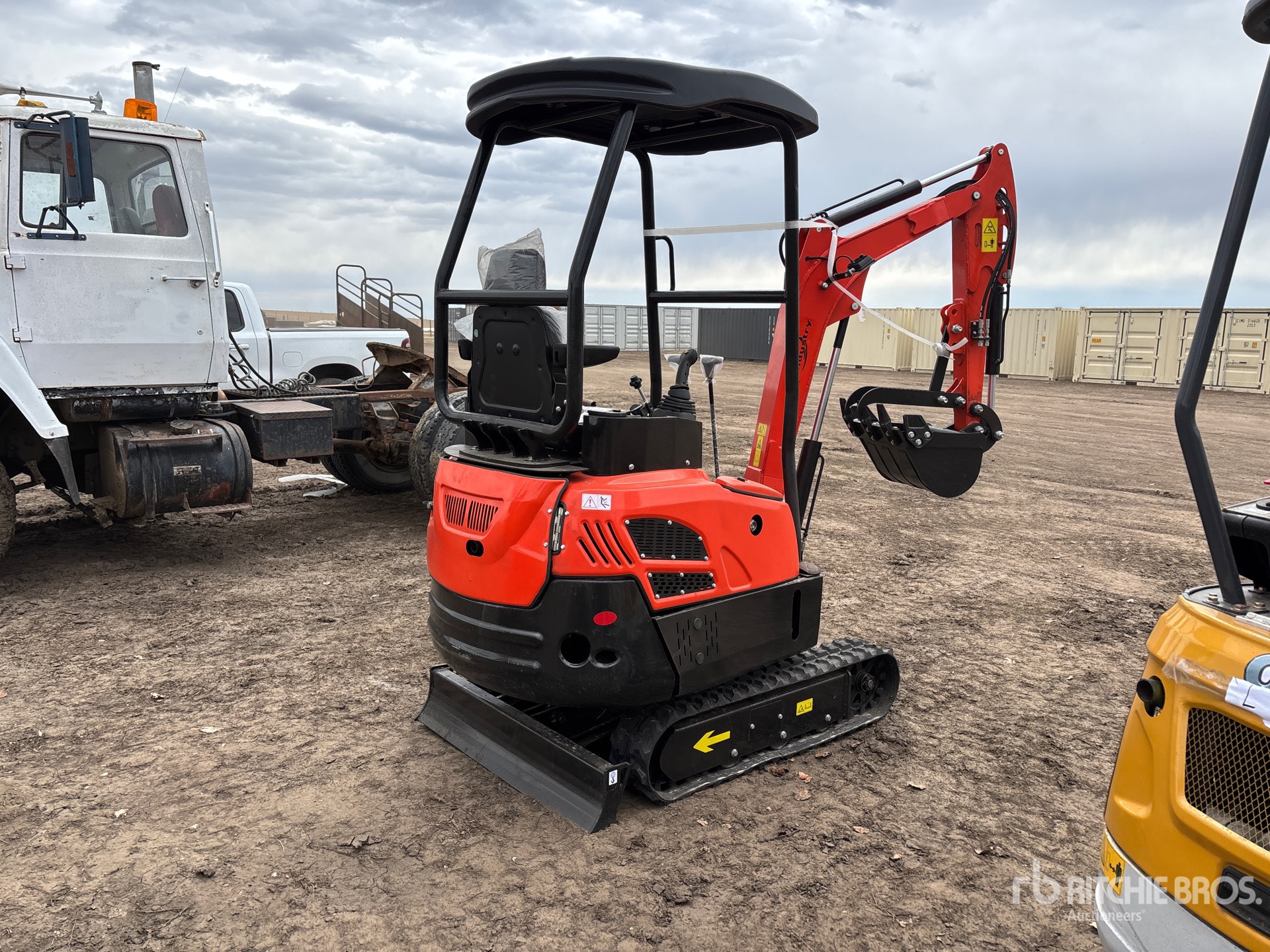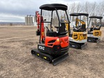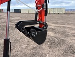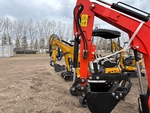 Étiquette EPA américaine 2025, flèche pivotante, bras de 90 cm (3 pi 2 po), tuyauterie hydraulique auxiliaire, lame de remblayage, chenilles en caoutchouc de 18 cm (7 po), godet de fouille de 40 cm (16 po), pouce manuel