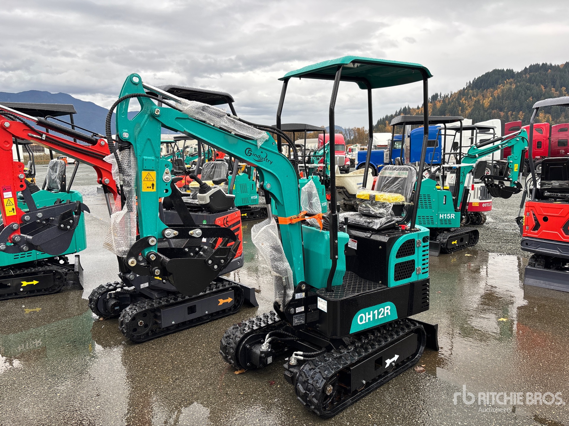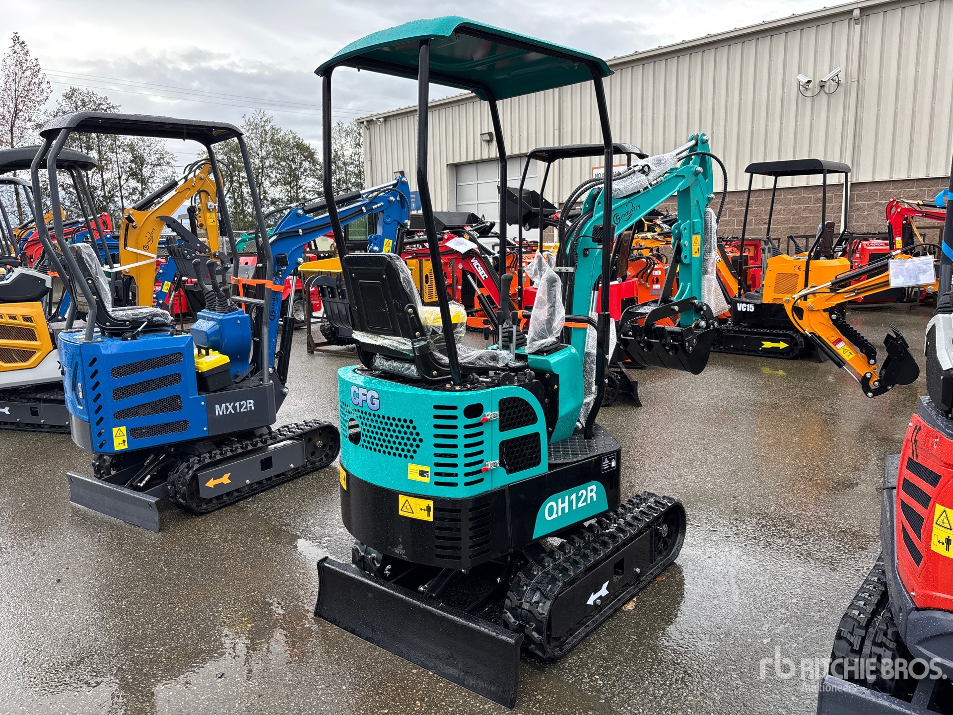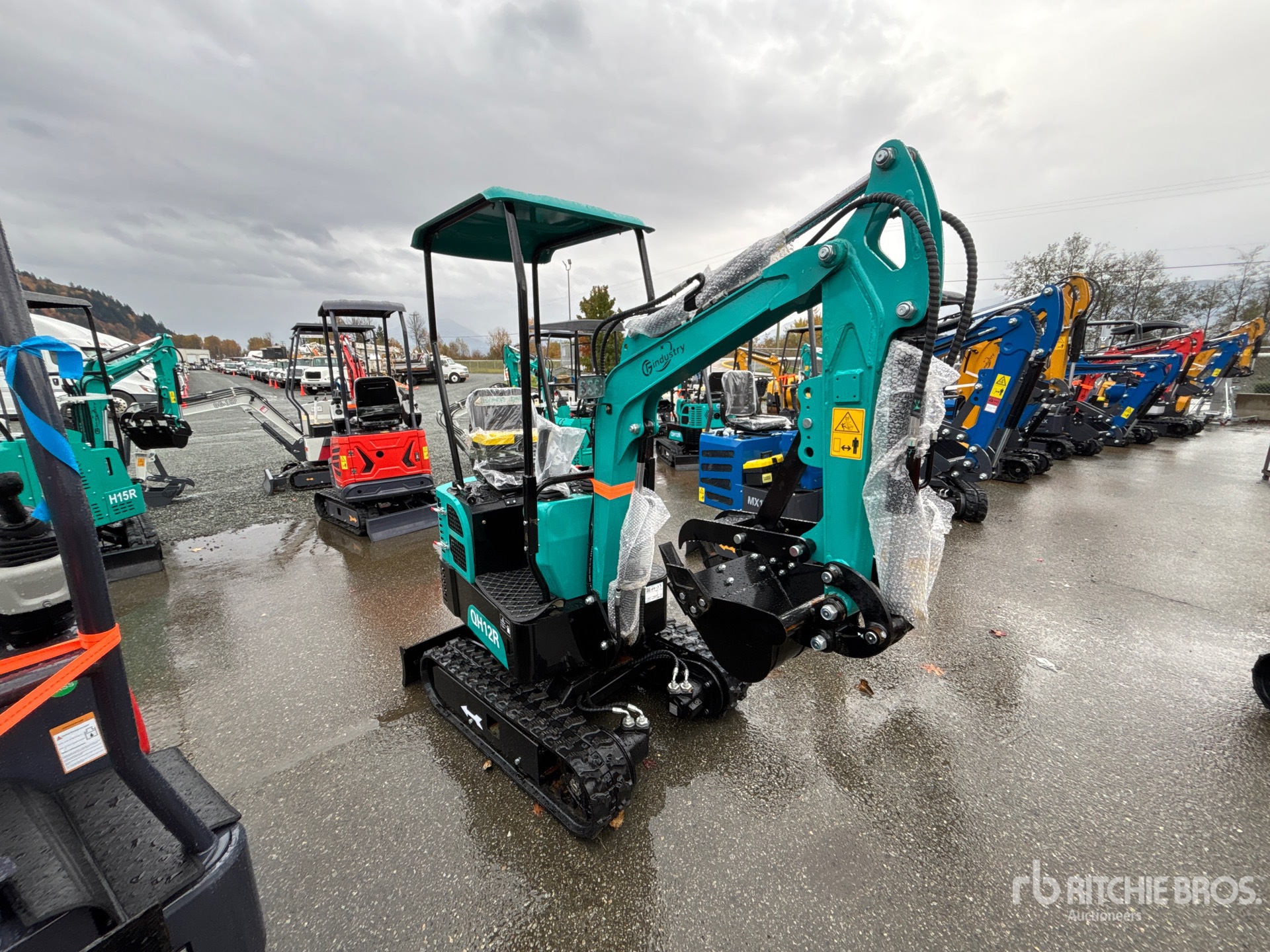 Lance de 81 cm, circuit hydraulique auxiliaire, lame de remblayage, chenilles en caoutchouc de 18 cm, godet de creusement de 36 cm, pince manuelle, ripper