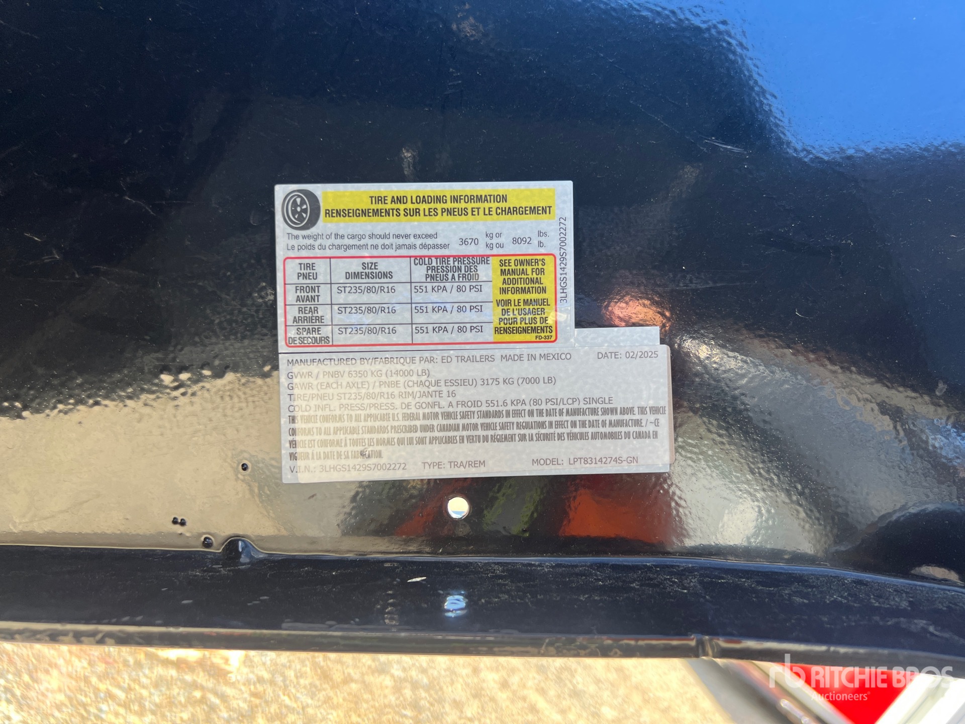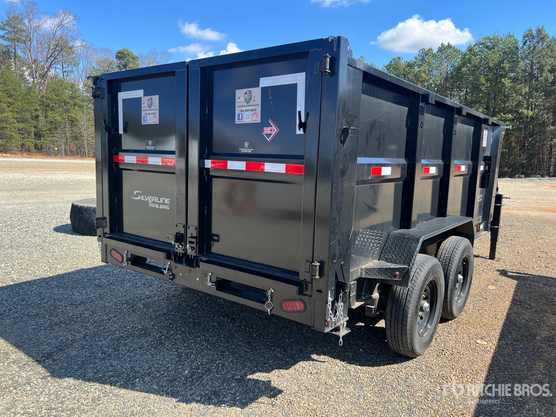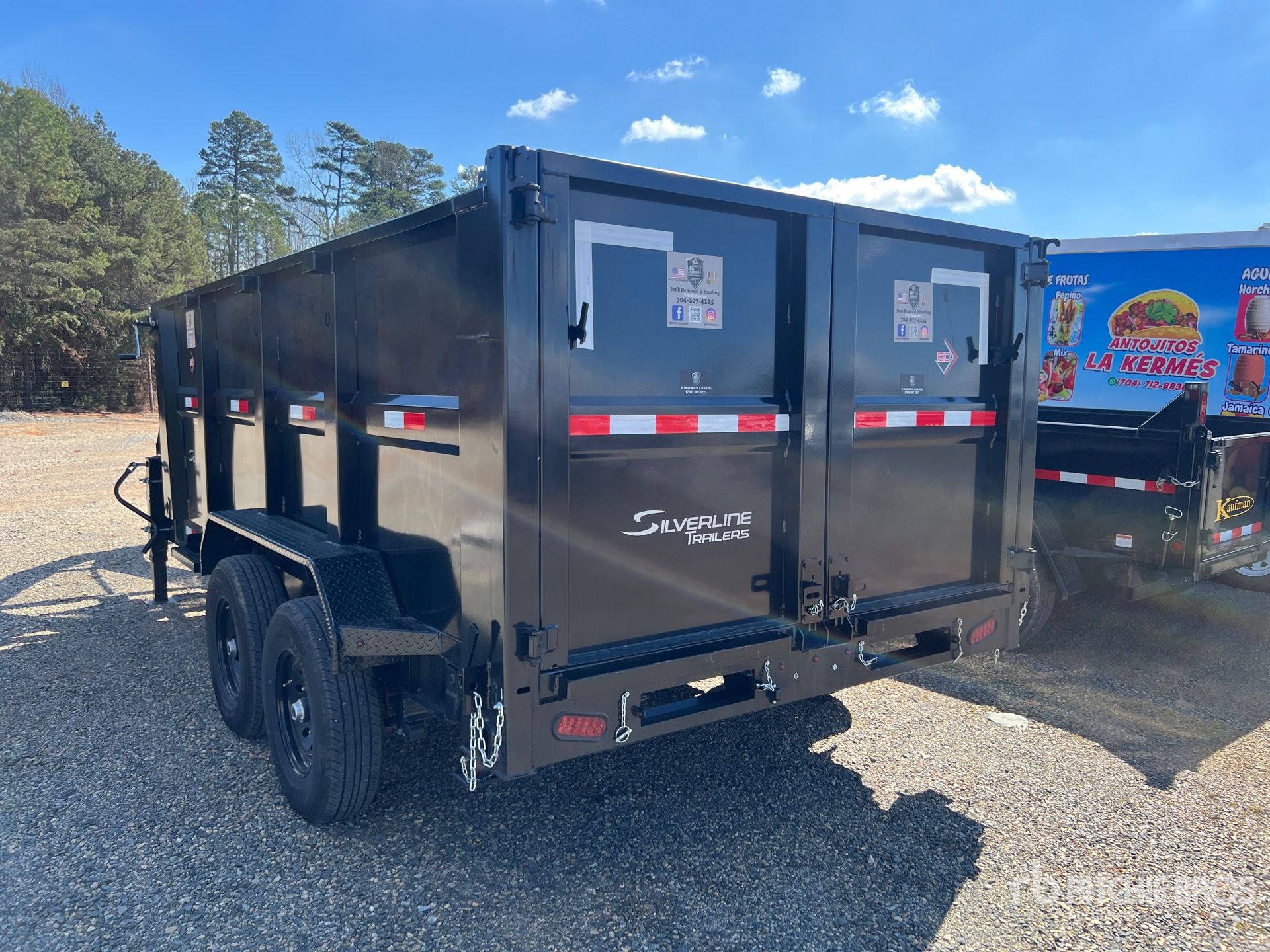 Suspension à ressorts, freins électriques, caisse de 4,27 m (14 pi), parois latérales de 1,27 m (50 po), caisse en acier, bâche à enroulement manuel, hayon à double ouverture, pneus 235/80R16, PTAC de 6 350 kg (14 000 lb), caisse avant de 4,27 m (14 pi), parois latérales avant de 15,24 m (50 pi), bâche avant manuelle, hayon avant à double ouverture