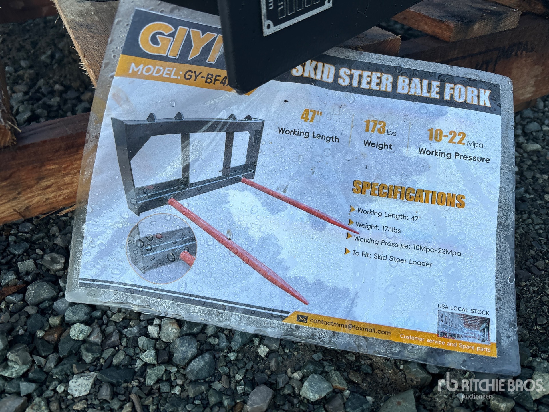 Les Informations détaillées de l’équipement sont d’une portée limitée, et les Encans Ritchie Bros. n’ont inspecté aucun autre aspect ou composant de l’équipement que ceux présentés expressément. Sauf indication précise, nous n’offrons aucune représentation ou garantie, officielle ou implicite, sur l’équipement ou ses composants, sans aucune limite de représentation ou de garantie en ce qui concerne la fonctionnalité, la conformité à toute norme de sécurité ou l’exigence de toute autorité ou agence de régulation en vigueur, l’adaptation à un quelconque usage, ou la valeur commerciale. Il vous est fortement conseillé d’effectuer votre propre inspection détaillée de l’équipement avant d’enchérir.
