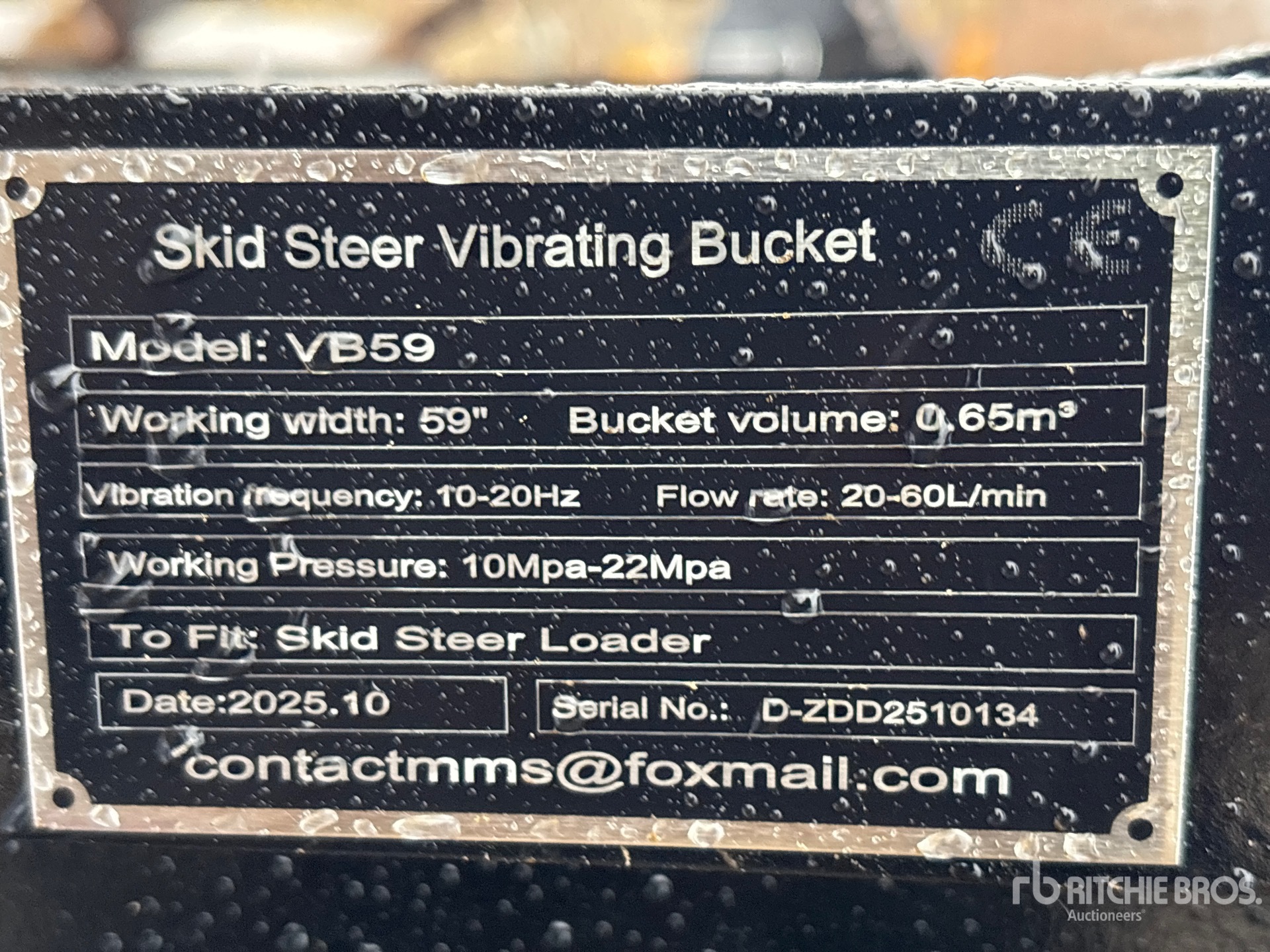 Les Informations détaillées de l’équipement sont d’une portée limitée, et les Encans Ritchie Bros. n’ont inspecté aucun autre aspect ou composant de l’équipement que ceux présentés expressément. Sauf indication précise, nous n’offrons aucune représentation ou garantie, officielle ou implicite, sur l’équipement ou ses composants, sans aucune limite de représentation ou de garantie en ce qui concerne la fonctionnalité, la conformité à toute norme de sécurité ou l’exigence de toute autorité ou agence de régulation en vigueur, l’adaptation à un quelconque usage, ou la valeur commerciale. Il vous est fortement conseillé d’effectuer votre propre inspection détaillée de l’équipement avant d’enchérir.