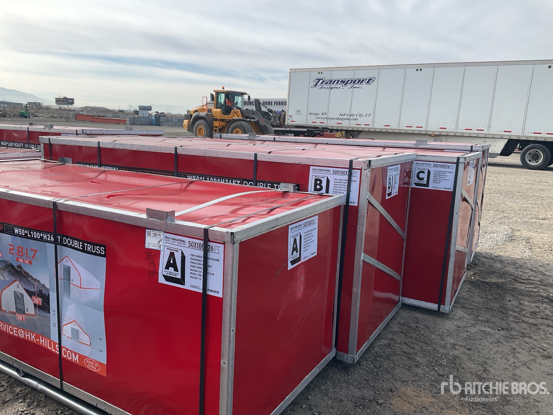 Les dimensions données ne sont qu’une estimation. Les dimensions réelles pour le chargement peuvent varier en fonction de la hauteur du camion/remorque et de la configuration/position de la machine une fois chargée. L’acheteur est responsable de la prise de mesures de toutes les charges avant de quitter le site d’enchères, et ce, afin de s’assurer que la charge peut être transportée en toute sécurité. Toutes les dimensions doivent être vérifiées par l’acheteur. Veuillez ne pas vous fier à ces dimensions pour le transport.