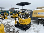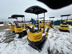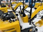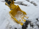 Bras de 76 cm, circuit hydraulique auxiliaire, lame de remblayage, chenilles en caoutchouc de 18 cm, attache rapide hydraulique, godet de terrassement de 28 cm, pouce manuel