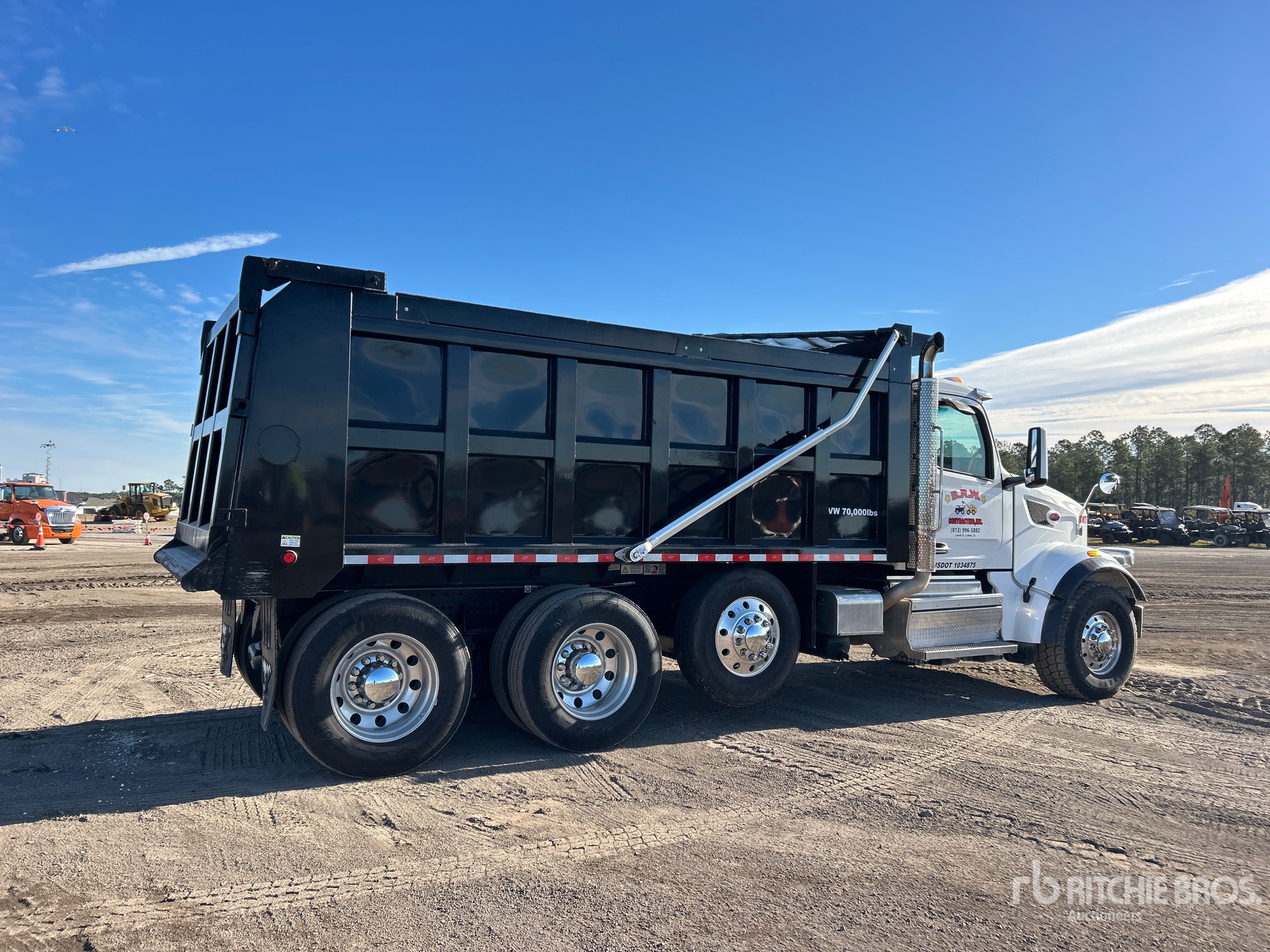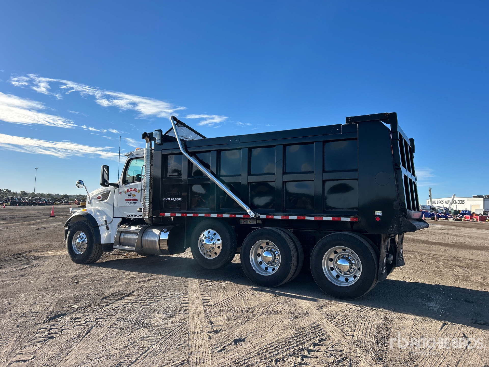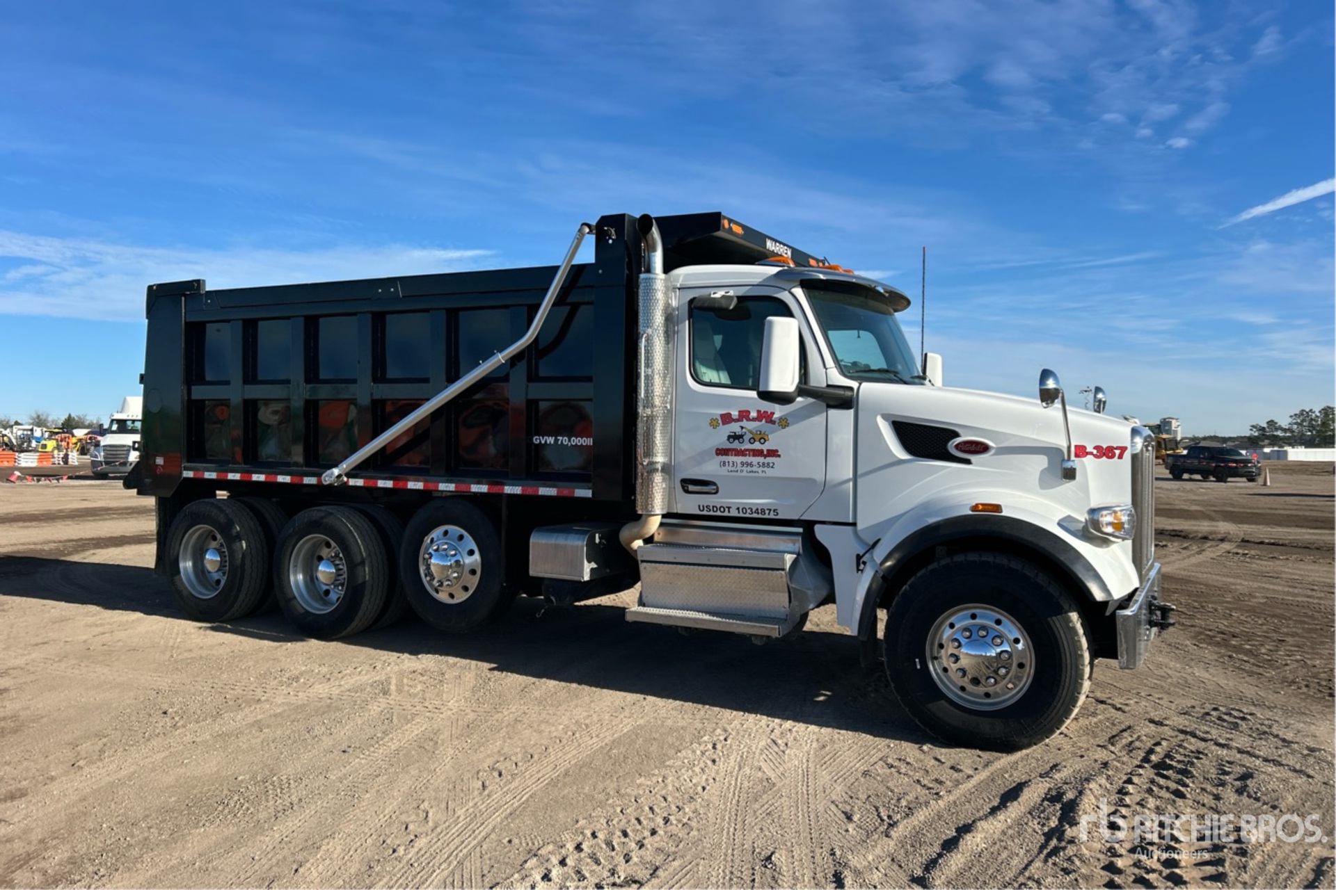 Situé sur la voie 61, emplacement 4, moteur diesel Cummins X15 6 cylindres 15 L 450 ch, étiquette EPA américaine 2024, nécessite du liquide d'échappement diesel, 3107 heures moteur, frein moteur, transmission automatique Allison 4500, double blocage de différentiel, essieu avant 20 000 lb, essieu arrière 46 000 lb, essieux moteurs Dana D46-172DHP, rapport de pont 4,3:1, PTAC 78 350 lb, cabine à suspension pneumatique, roues en aluminium, pneus avant 425/65R22.5, pneus arrière 11R24.5, essieu porteur pneumatique directionnel, double boîtier de direction, châssis double, suspension Hendrickson Haulmaax, empattement 236 pouces, prise de force, benne en acier Warren 17 pi de long x 5 pi de haut, capacité 23 m³, bâche à enroulement électrique, air comprimé Hayon élévateur à grande levée, équipement de B-R-W-Contracting