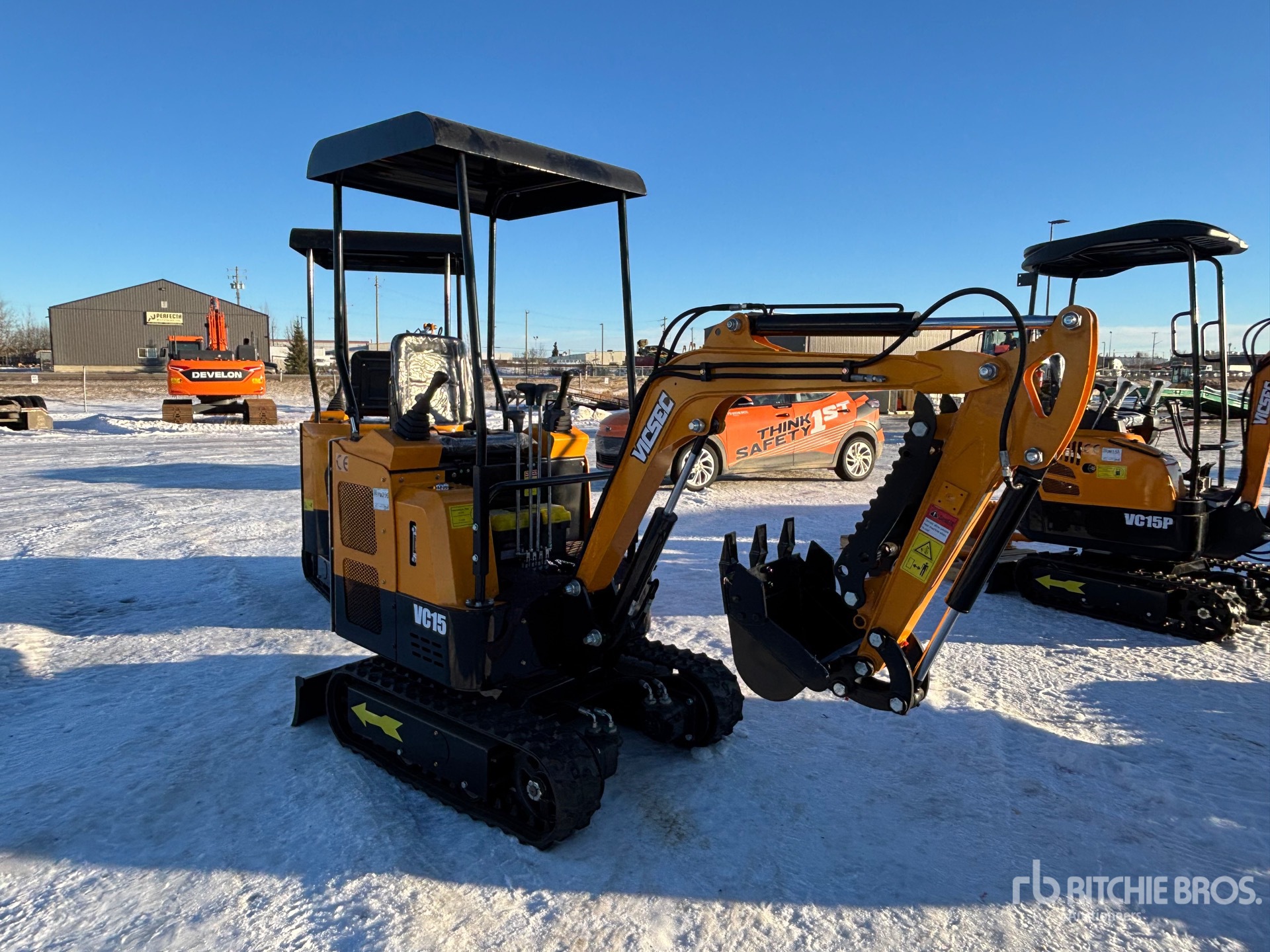 Balancier de 2 pi 7 po, plomberie hydraulique auxiliaire, lame de remblayage, chenilles en caoutchouc de 7 po, godet de creusement de 15 po, pouce manuel