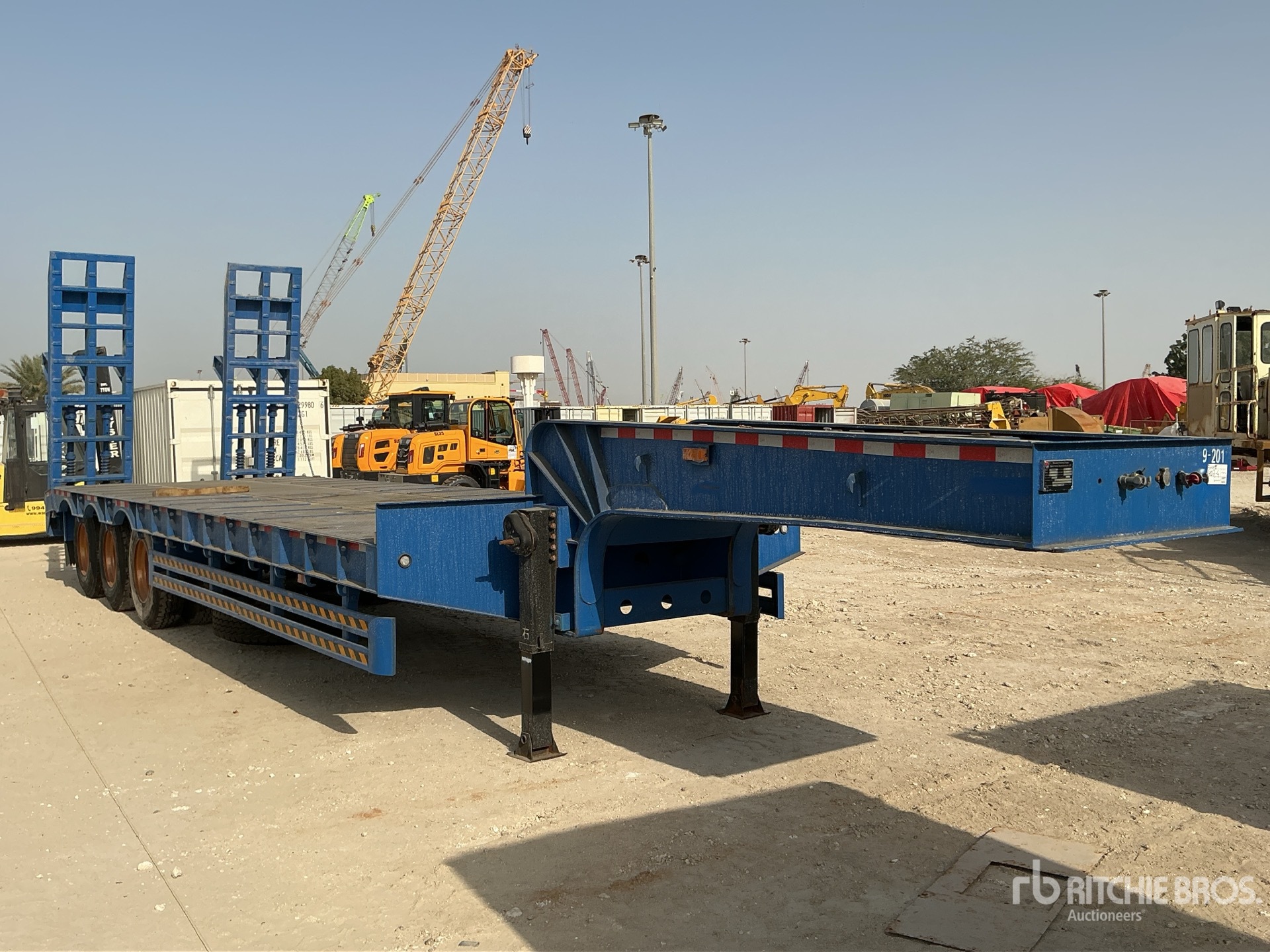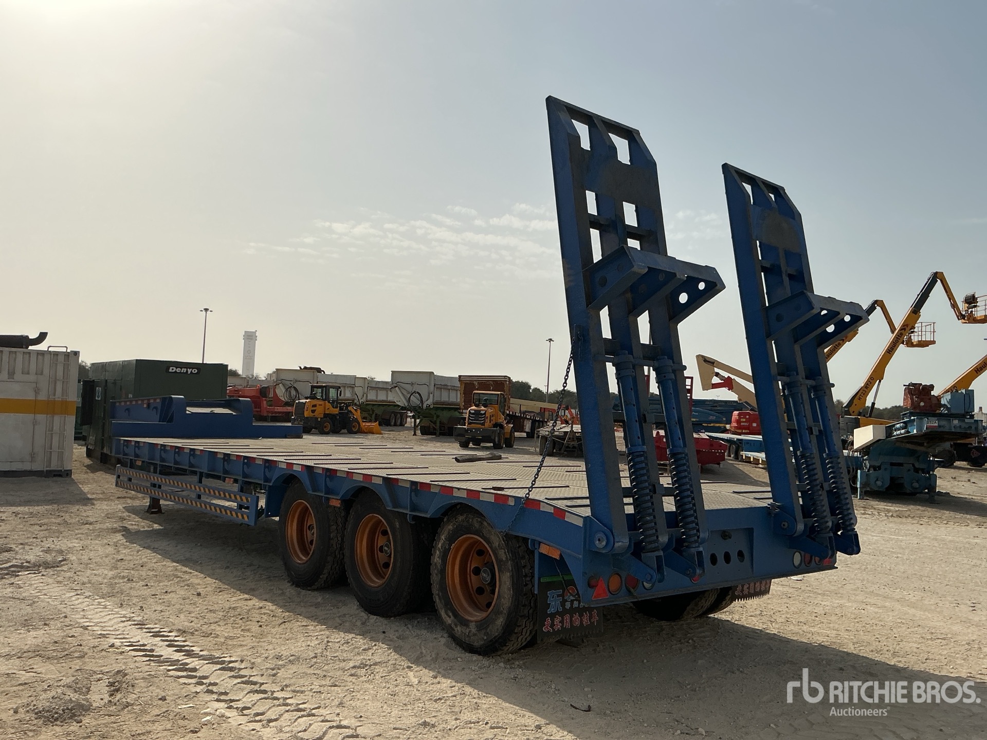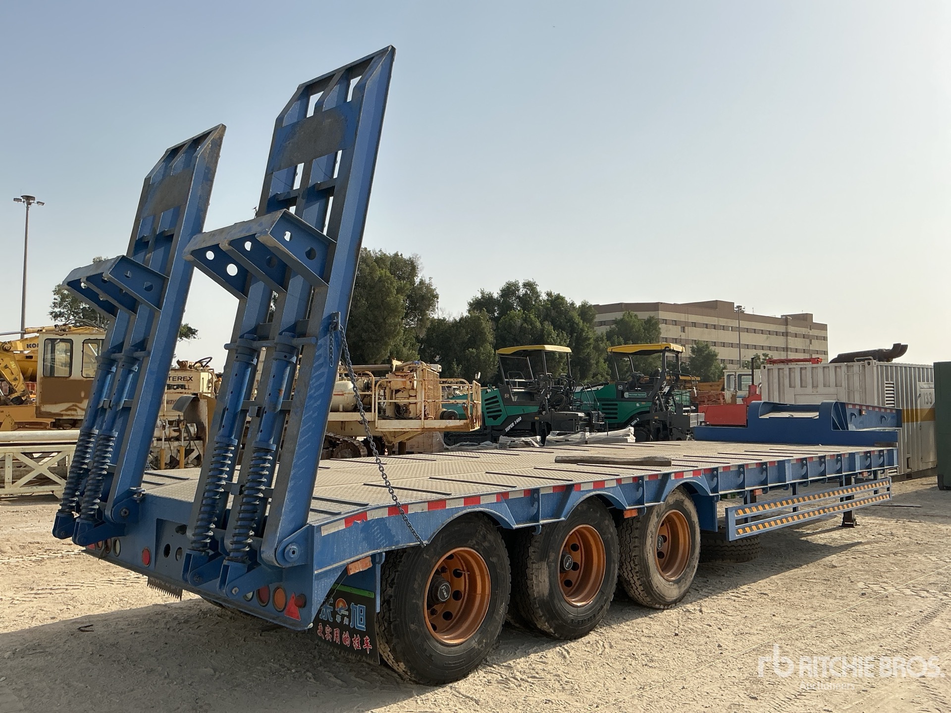 Suspension à ressorts, freins pneumatiques, plateau supérieur de 3 m, plateau principal de 9 m, queue d'aronde de 400 mm, largeur totale du plateau de 3000 mm, rampes manuelles, pneus 12R22.5
