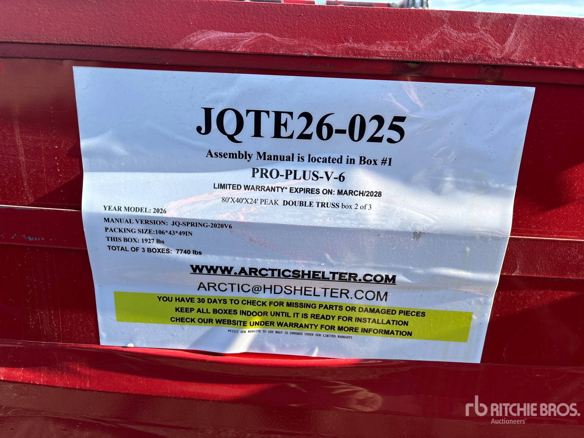 Les dimensions données ne sont qu’une estimation. Les dimensions réelles pour le chargement peuvent varier en fonction de la hauteur du camion/remorque et de la configuration/position de la machine une fois chargée. L’acheteur est responsable de la prise de mesures de toutes les charges avant de quitter le site d’enchères, et ce, afin de s’assurer que la charge peut être transportée en toute sécurité. Toutes les dimensions doivent être vérifiées par l’acheteur. Veuillez ne pas vous fier à ces dimensions pour le transport.
