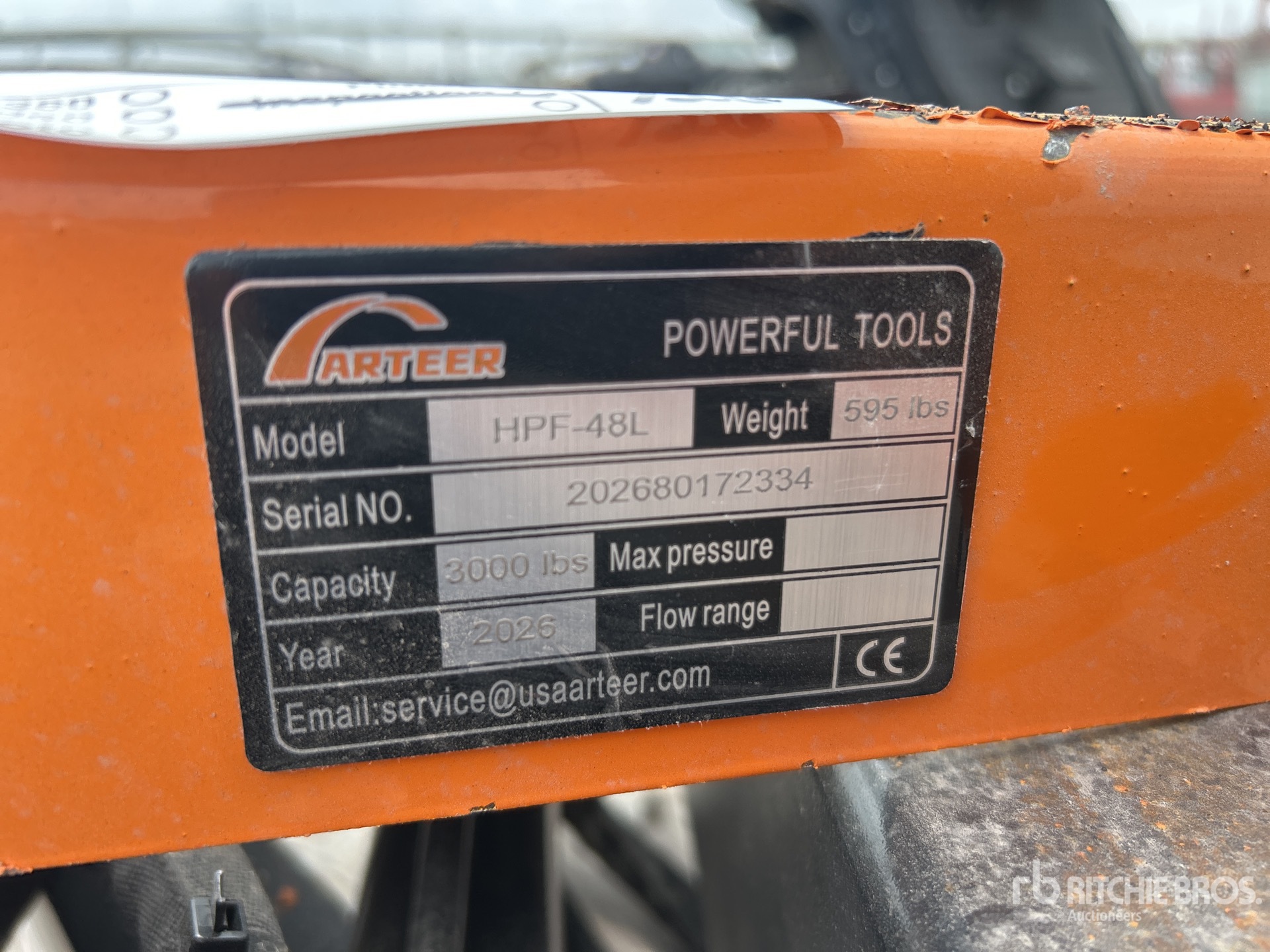 Les Informations détaillées de l’équipement sont d’une portée limitée, et les Encans Ritchie Bros. n’ont inspecté aucun autre aspect ou composant de l’équipement que ceux présentés expressément. Sauf indication précise, nous n’offrons aucune représentation ou garantie, officielle ou implicite, sur l’équipement ou ses composants, sans aucune limite de représentation ou de garantie en ce qui concerne la fonctionnalité, la conformité à toute norme de sécurité ou l’exigence de toute autorité ou agence de régulation en vigueur, l’adaptation à un quelconque usage, ou la valeur commerciale. Il vous est fortement conseillé d’effectuer votre propre inspection détaillée de l’équipement avant d’enchérir.