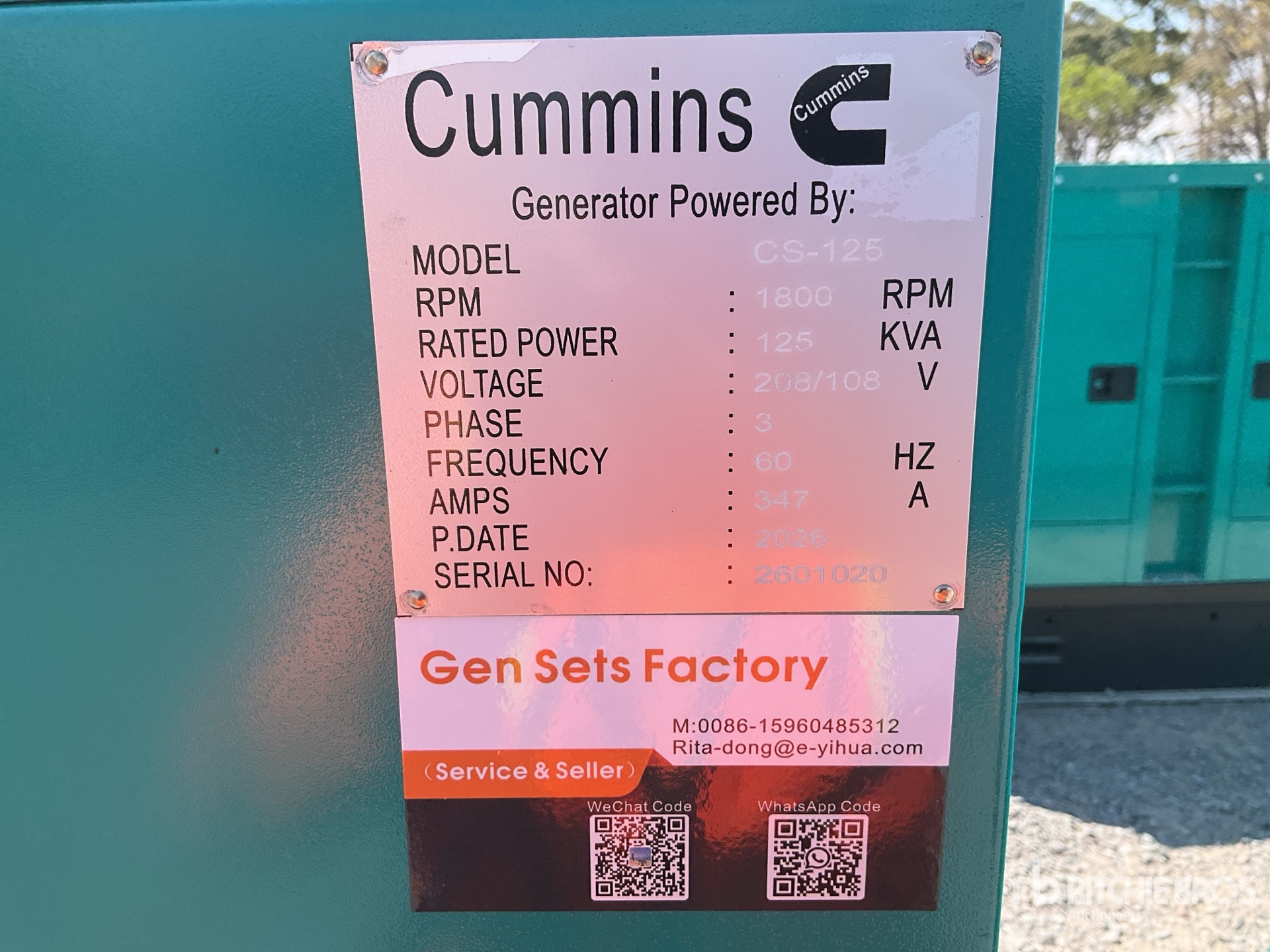 Moteur diesel Dongfeng Cummins 6 cylindres, puissance nominale triphasée de 125 kVA, tension nominale de 208 V/108 V, insonorisé, réservoir de carburant monté en bas.