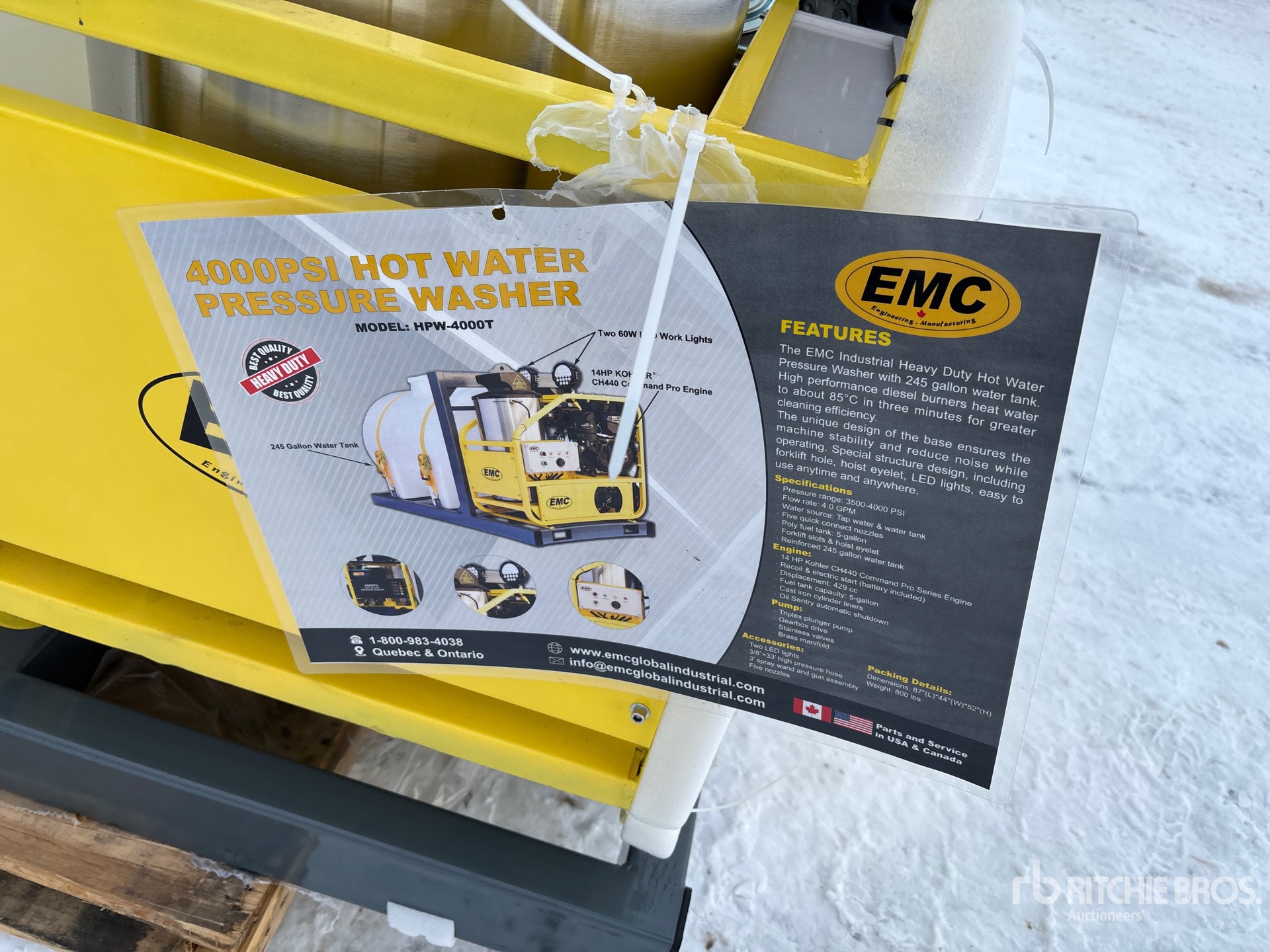 Pression nominale de 4 000 psi, chauffe-eau, réservoir d'eau de 245 gallons, tuyau, lance de pulvérisation, moteur diesel Kohler Command PRO monocylindre de 14 ch (429 cm³), 2 lampes DEL, débit : 4,0 GPM