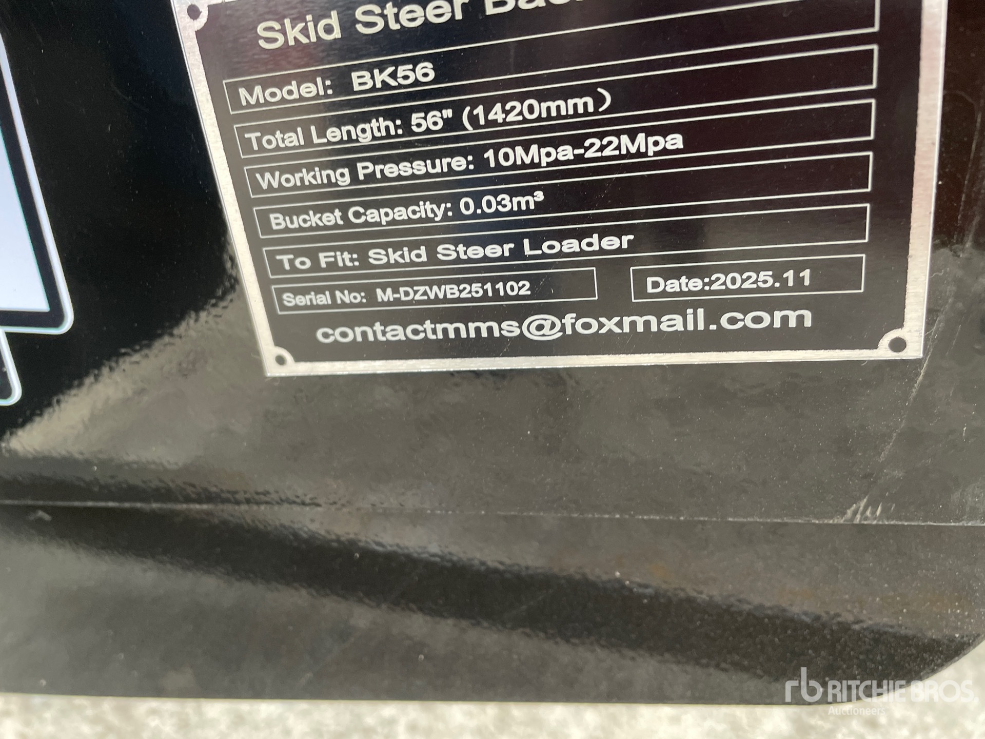 Les Informations détaillées de l’équipement sont d’une portée limitée, et les Encans Ritchie Bros. n’ont inspecté aucun autre aspect ou composant de l’équipement que ceux présentés expressément. Sauf indication précise, nous n’offrons aucune représentation ou garantie, officielle ou implicite, sur l’équipement ou ses composants, sans aucune limite de représentation ou de garantie en ce qui concerne la fonctionnalité, la conformité à toute norme de sécurité ou l’exigence de toute autorité ou agence de régulation en vigueur, l’adaptation à un quelconque usage, ou la valeur commerciale. Il vous est fortement conseillé d’effectuer votre propre inspection détaillée de l’équipement avant d’enchérir.