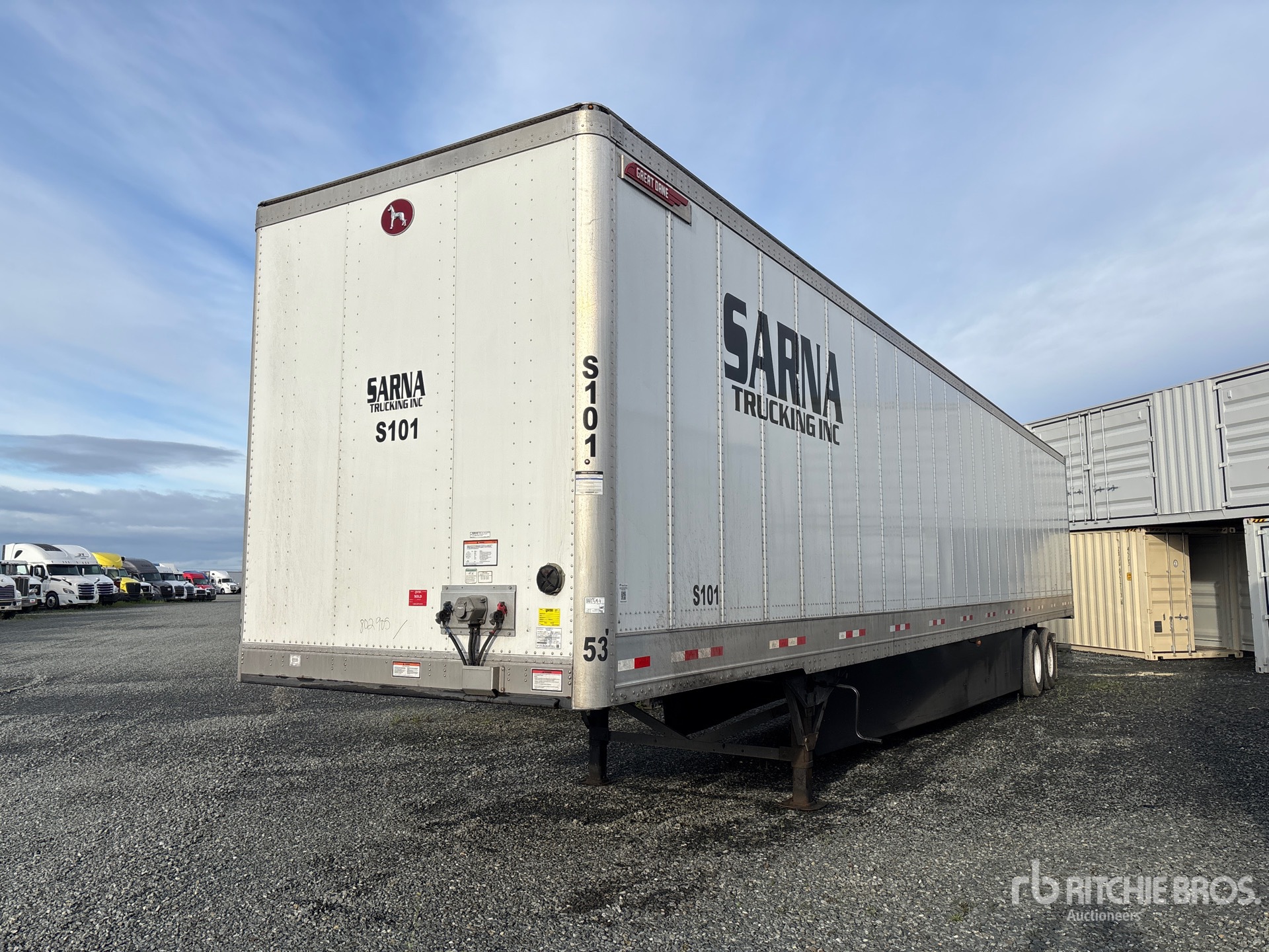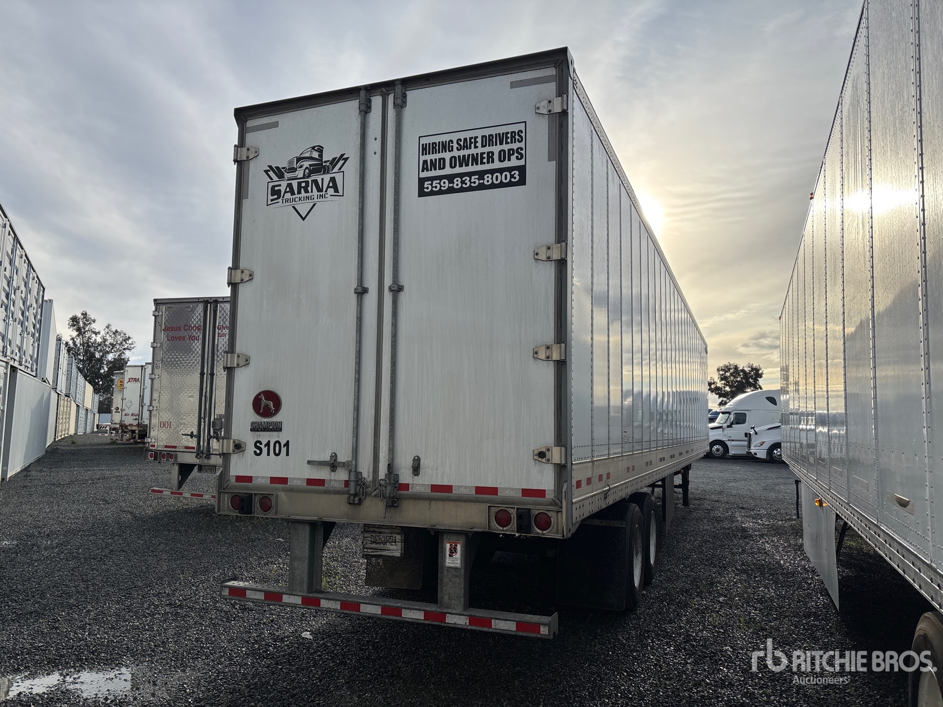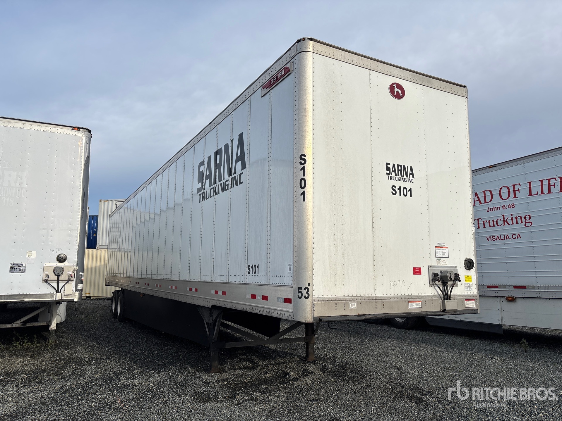 Suspension pneumatique, jupes latérales, plancher de bois franc, porte battante, pneus 295/75R22.5, PNBV de 68 000 lb